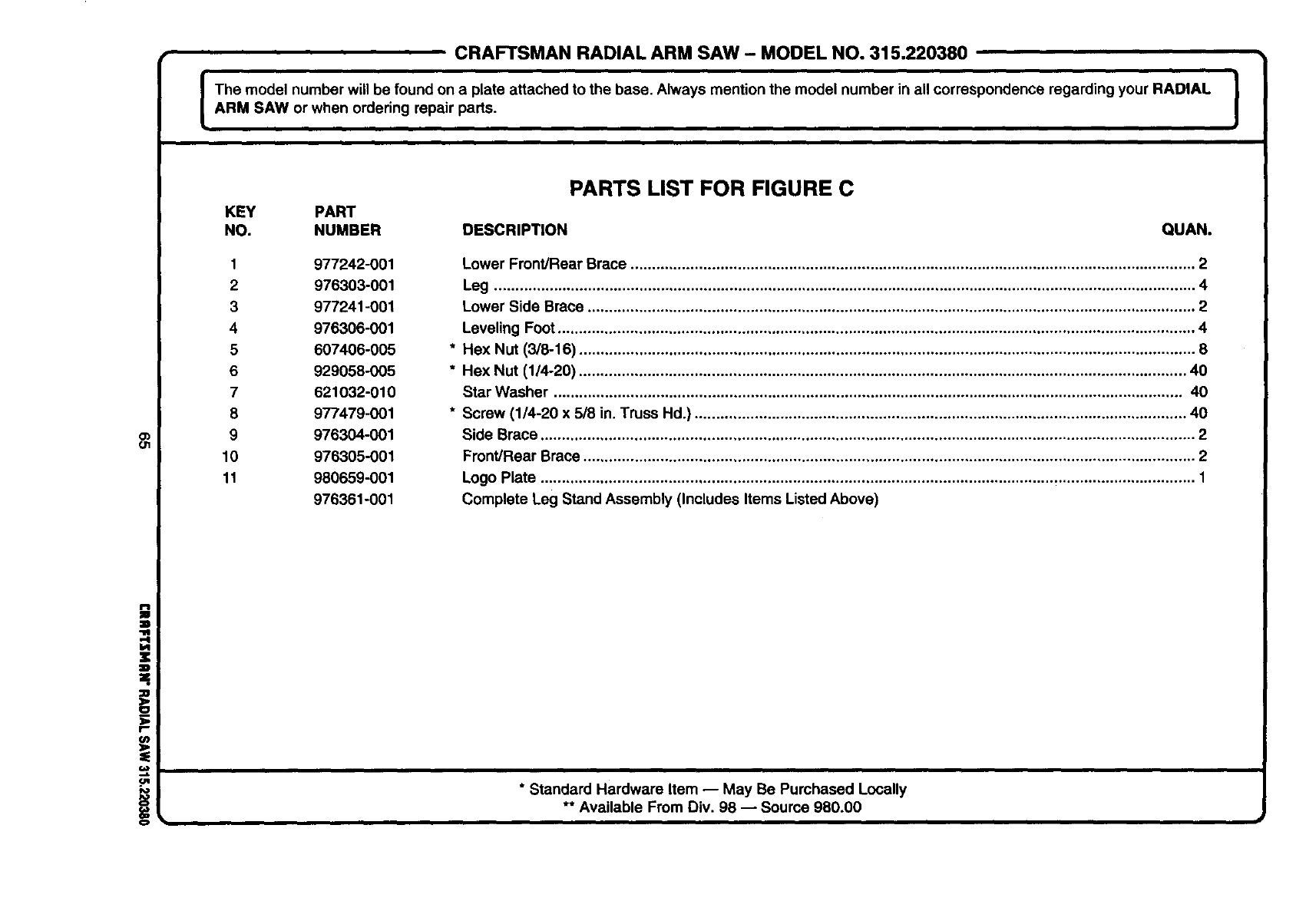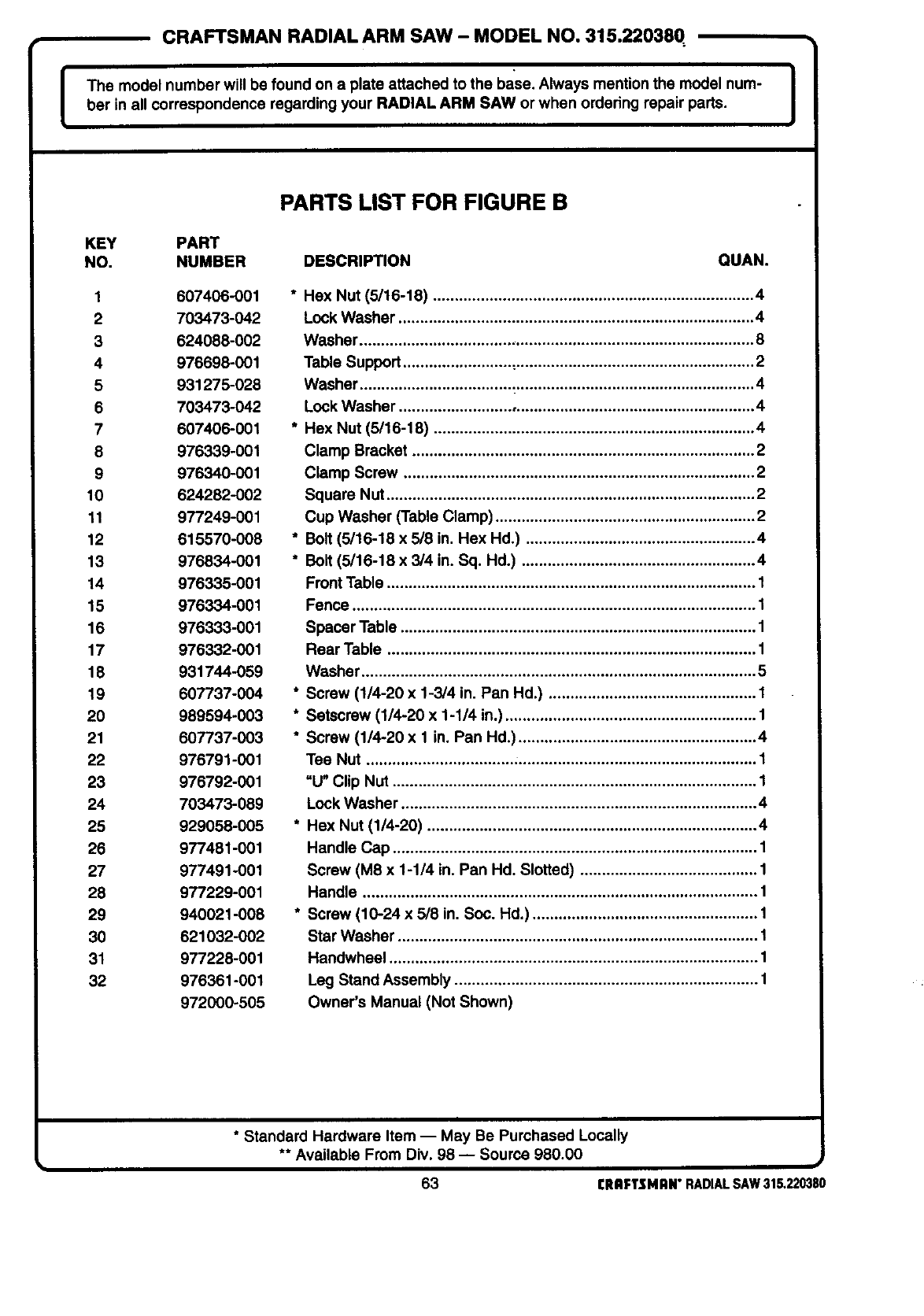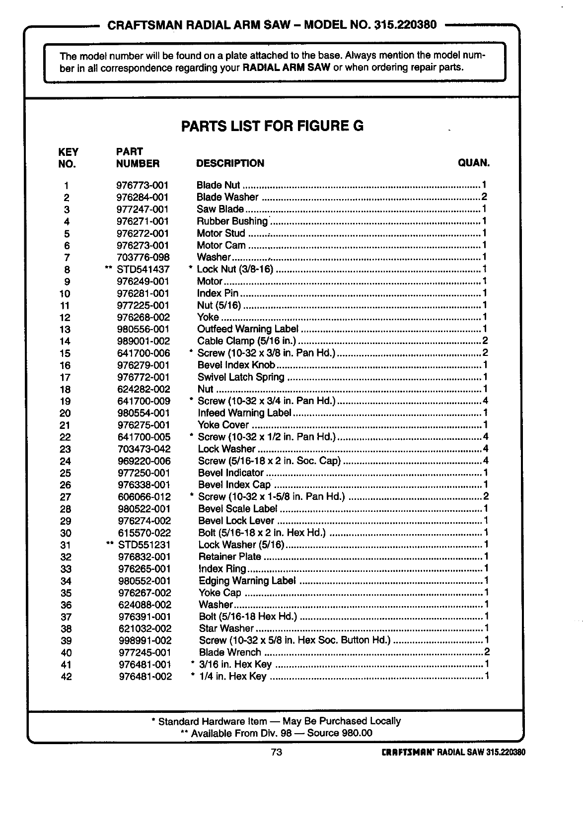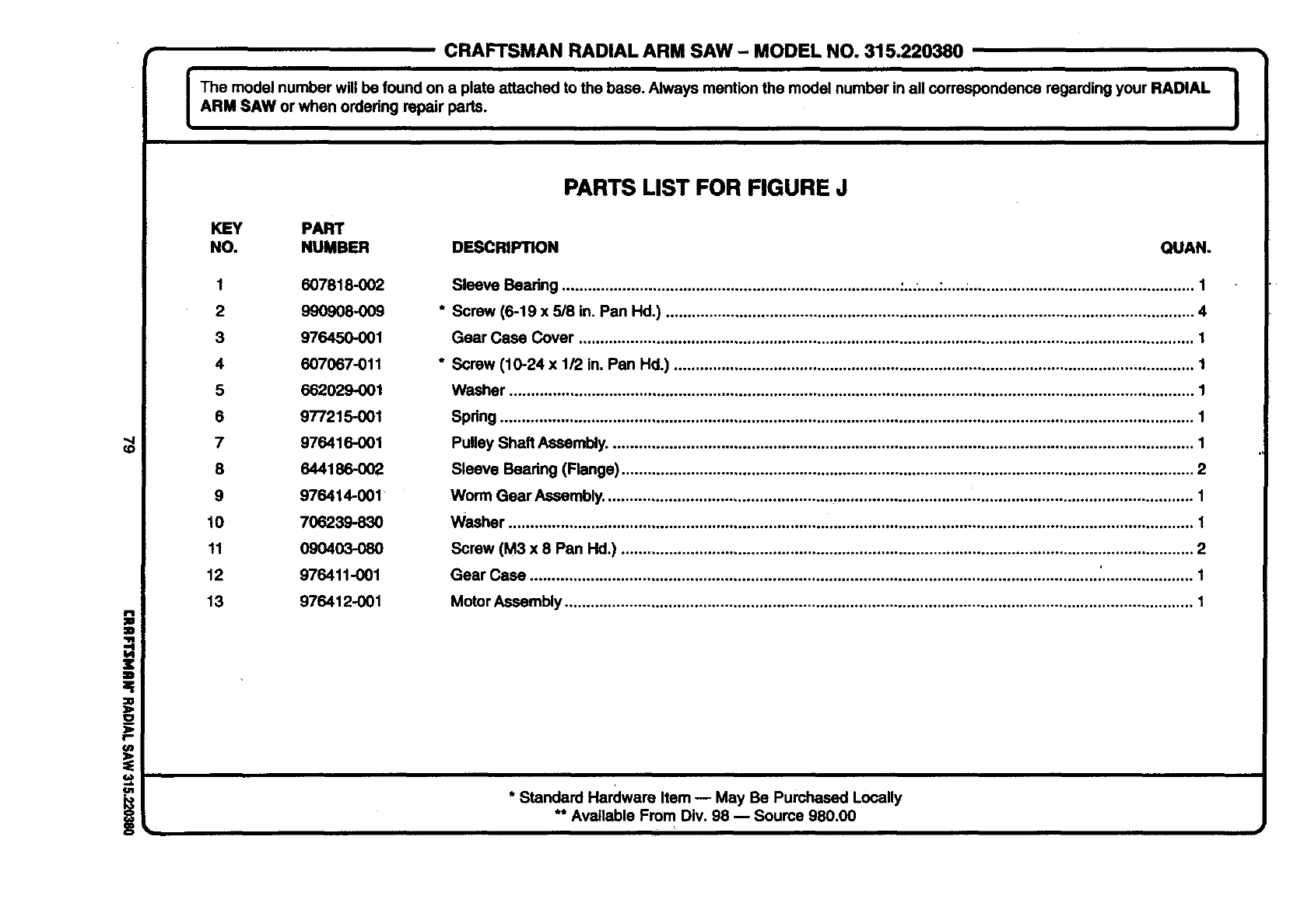 ARM SAW or when ordering repair parts. J