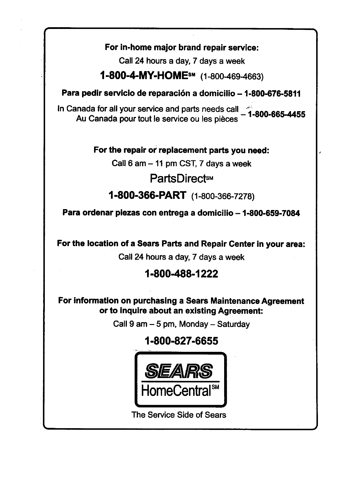 For information on purchasing a Sears Maintenance Agreement