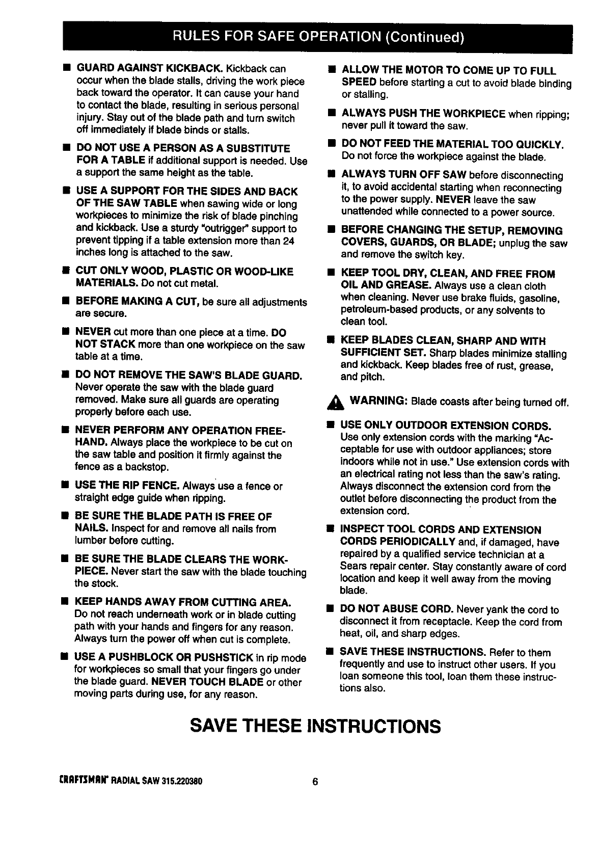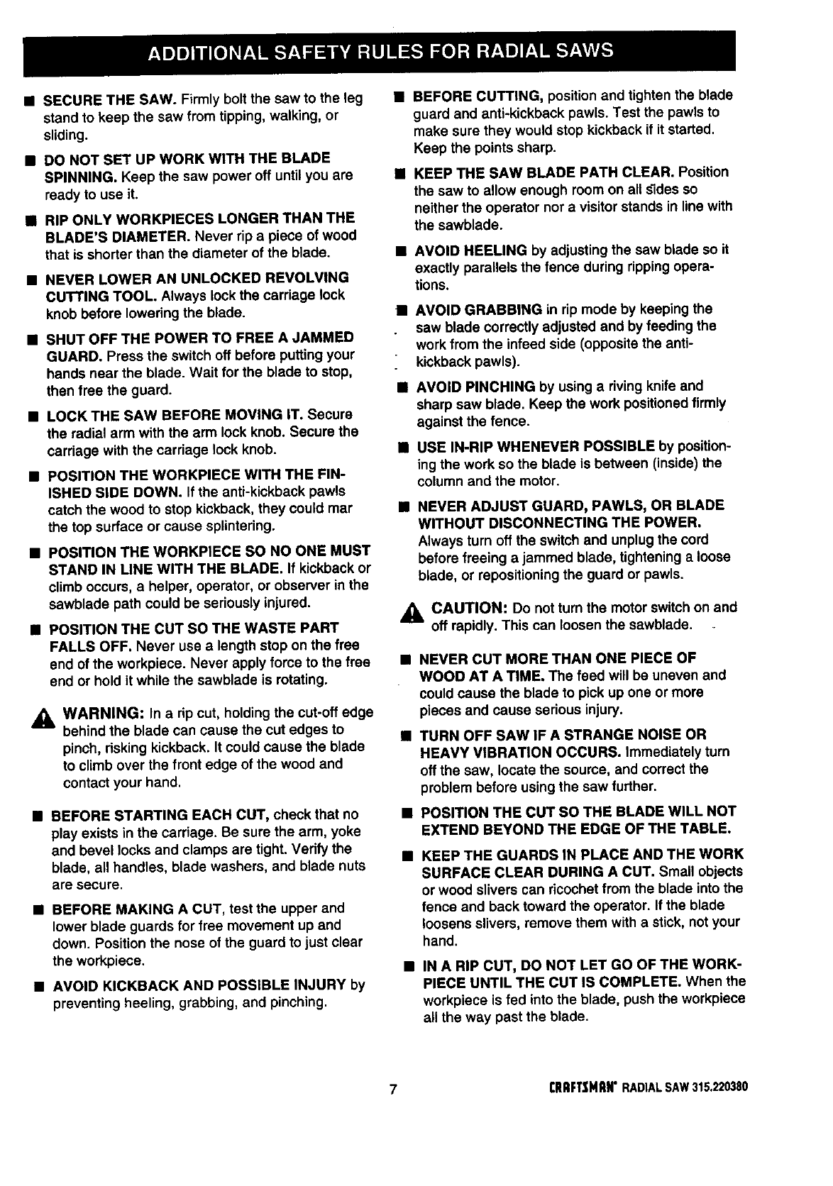 Caution. If you use your saw properly and only for what it is intended, you will enjoy years of safe, reliable