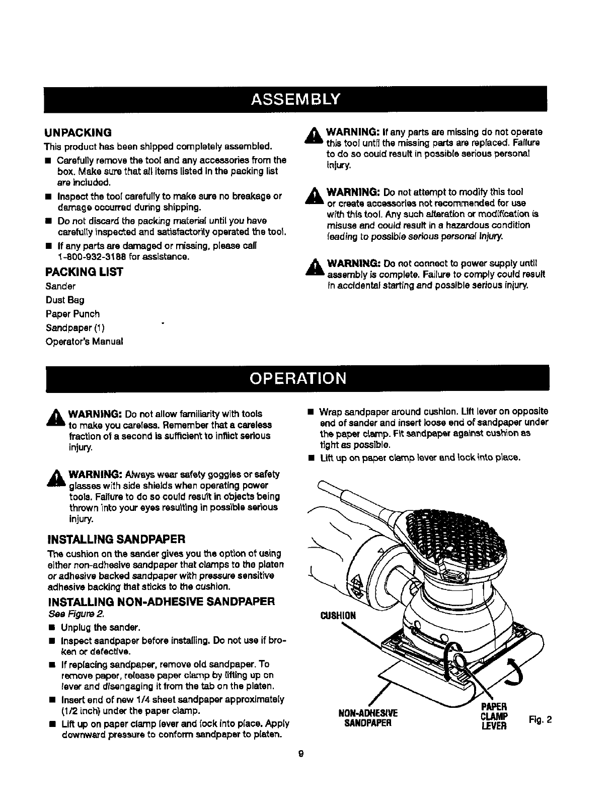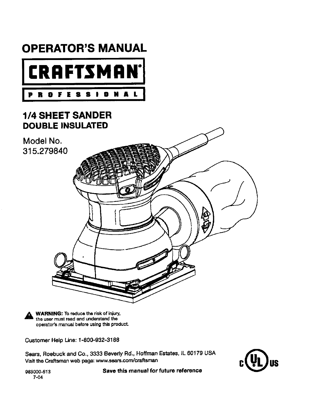 CRAFTSMAN Sander Manual L0502187 CRAFTSMAN Sander Owner's Manual, CRAFTSMAN Sander installation guides