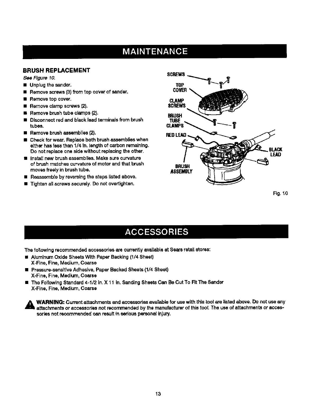 AWARNING: Current attanhments end accessoriesevailablafor use with this tsof are listedabove. Do not use any