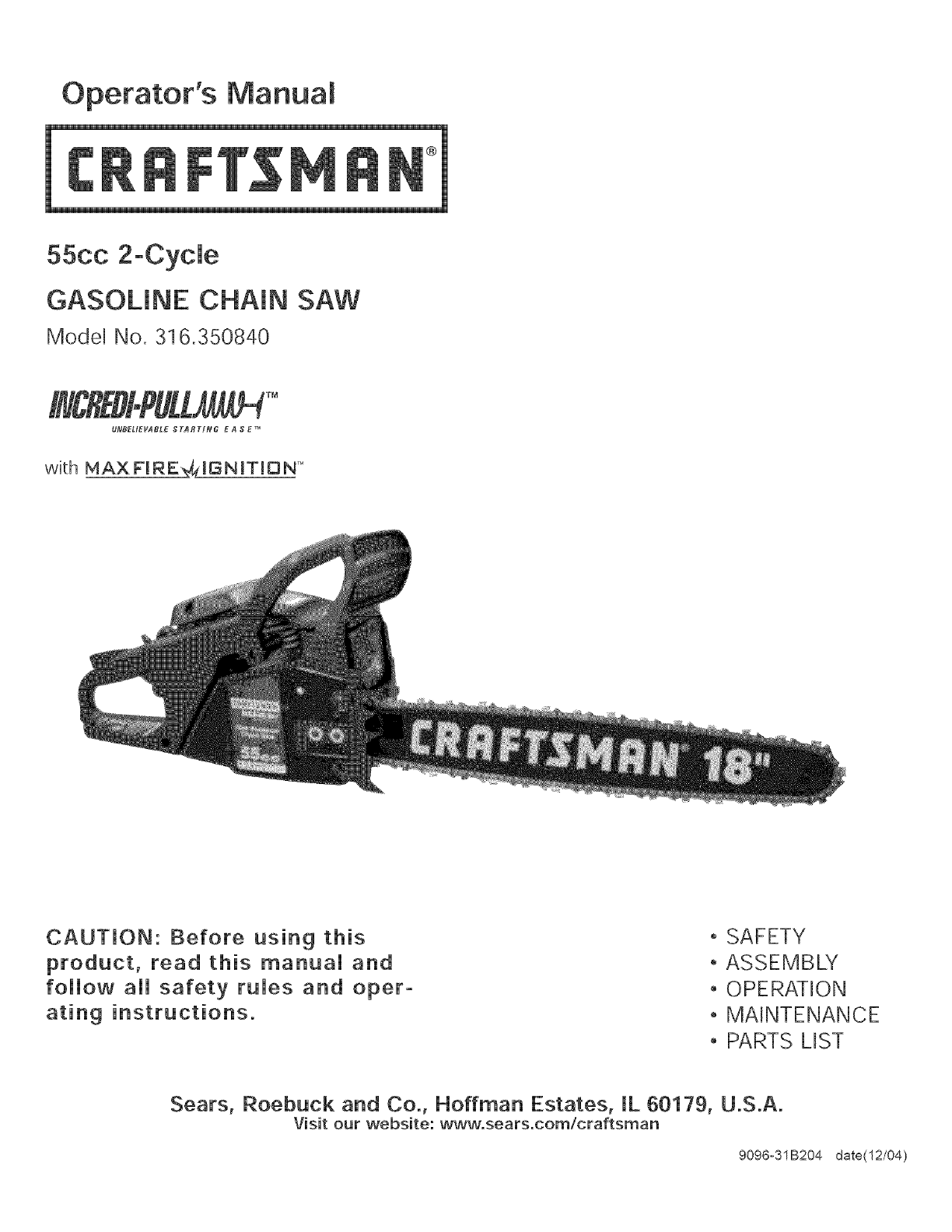 316350840 316350840 CRAFTSMAN CHAINSAW - Manuals and Guides L0503335 View the owners manual for your CRAFTSMAN CHAINSAW #316350840. Home:Lawn & Garden Parts:Craftsman Parts:Craftsman CHAINSAW Manual