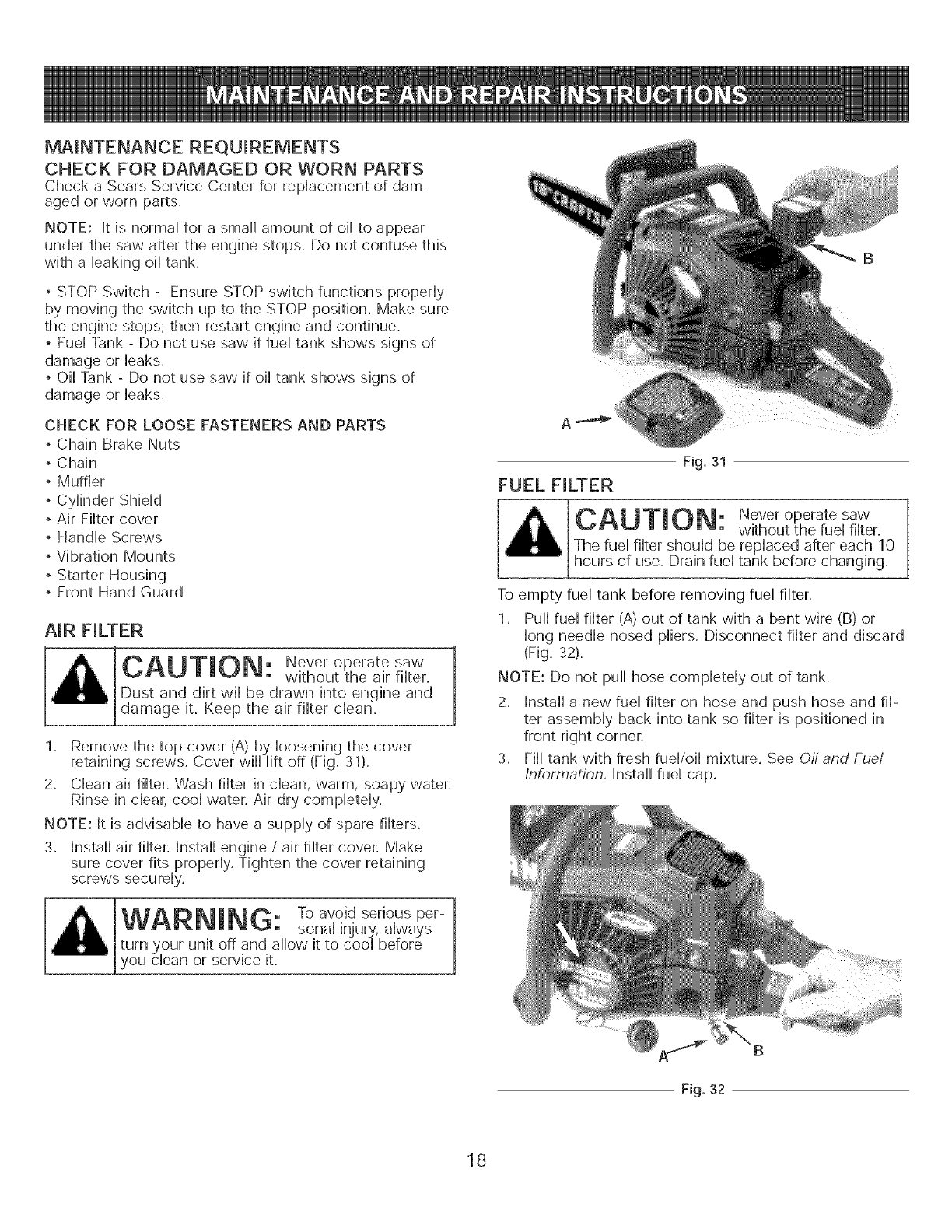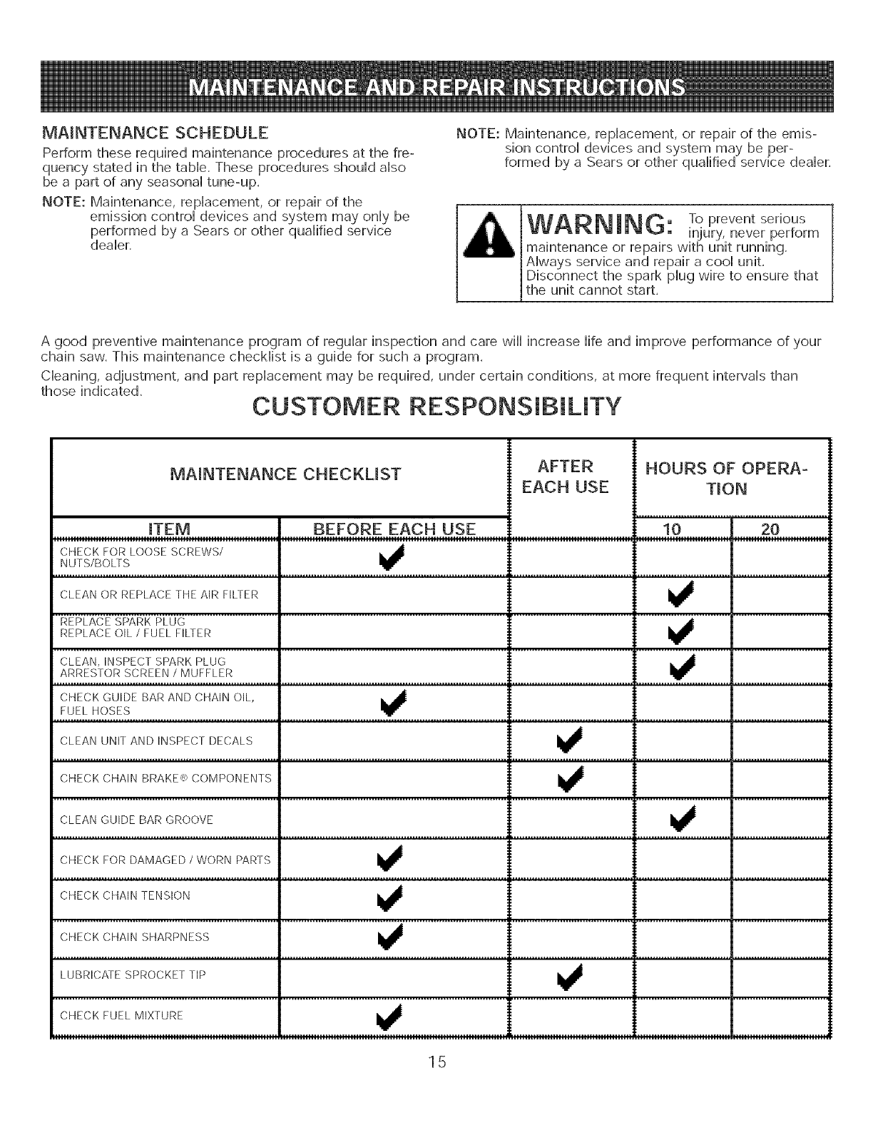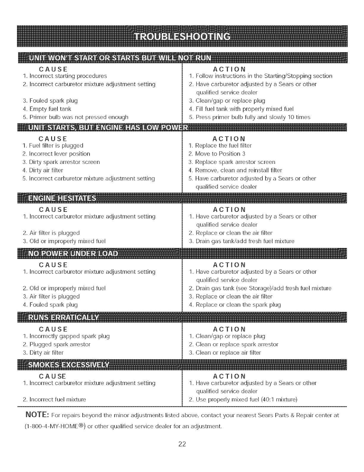 operator's manual. Sears recommends that you retain all receipts covering maintenance on your small off-road engine, but