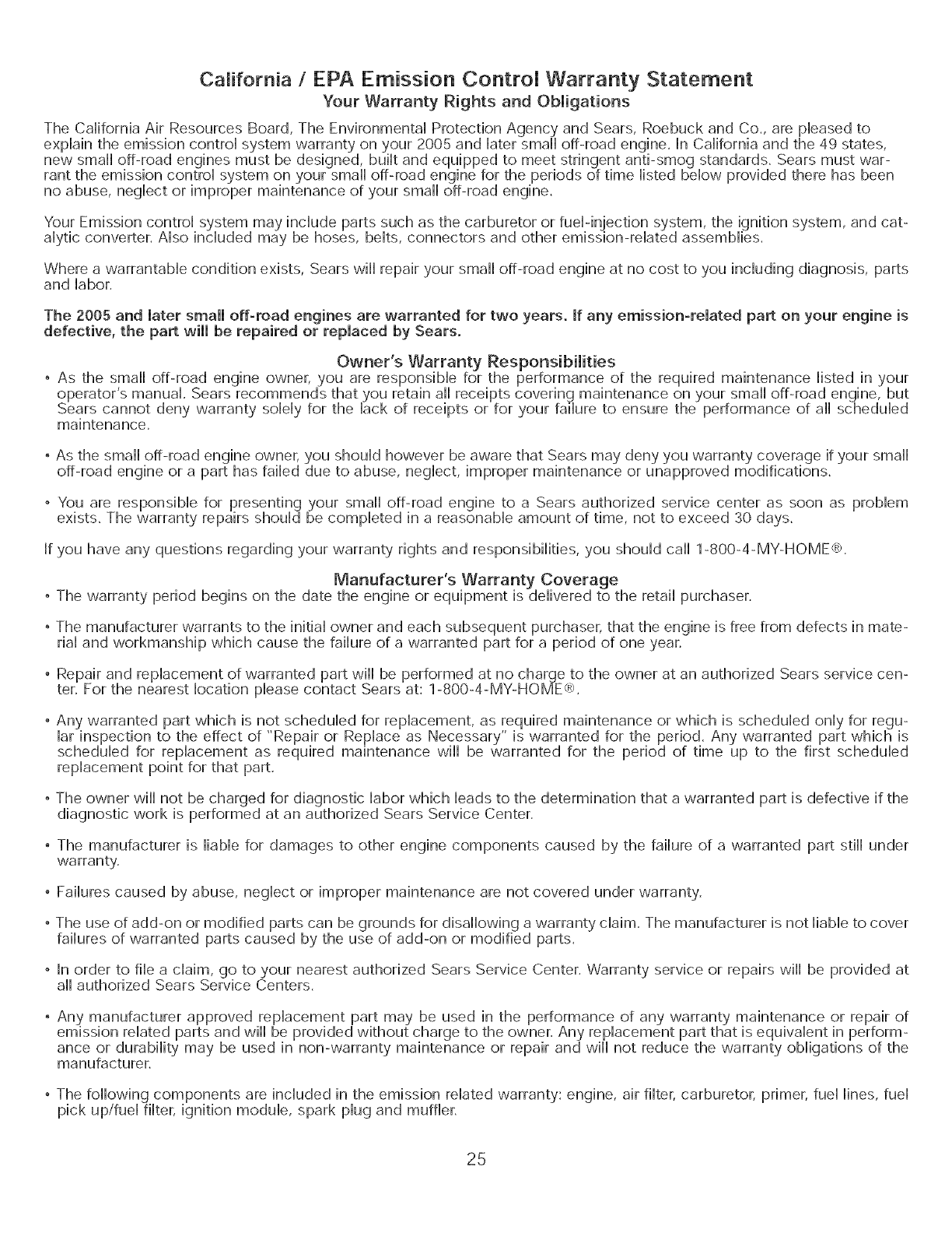 , As the small off-road engine owner, you should however be aware that Sears may deny you warranty coverage if your small