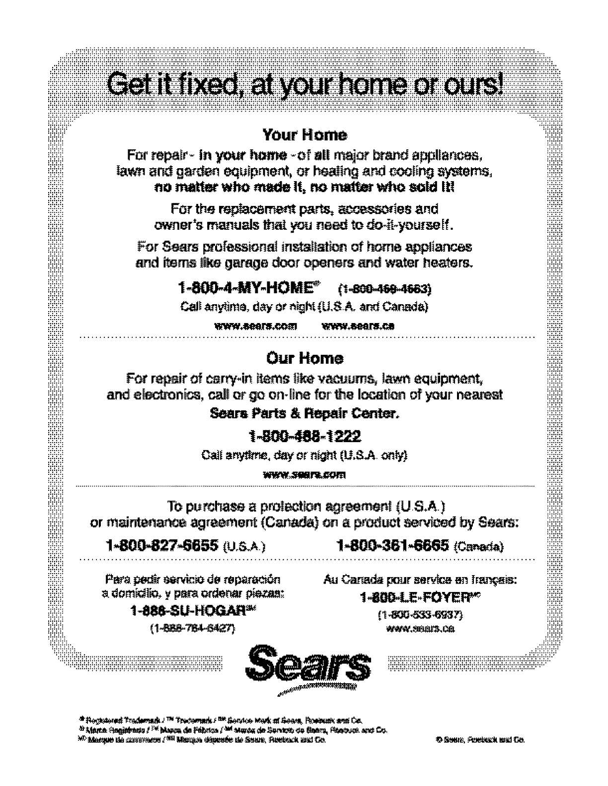 ter. For the nearest location please contact Sears at: 1-800-4-MY-HOME®.