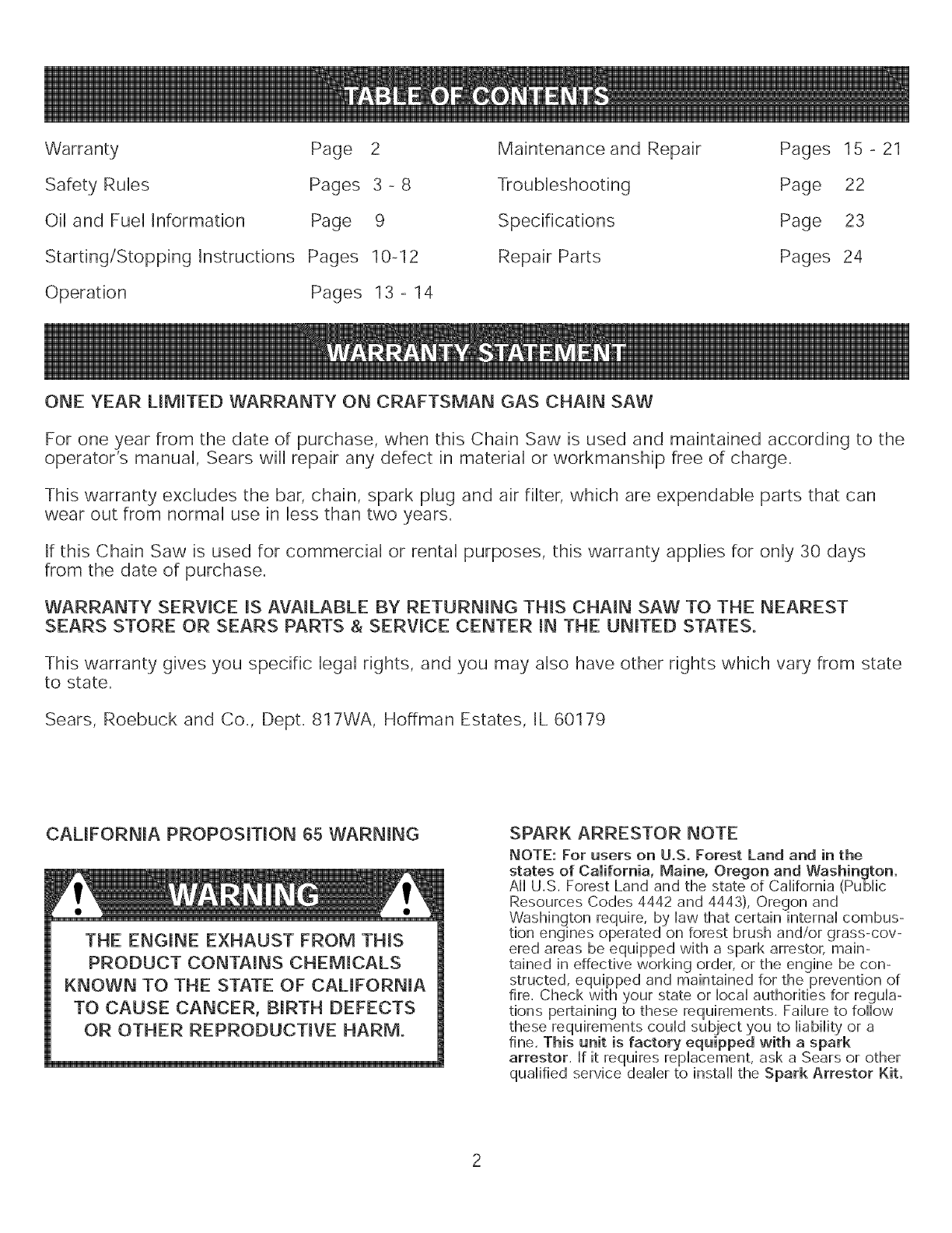 WARRANTY SERVICE IS AVAILABLE BY RETURNING THiS CHAIN SAW TO THE NEAREST
