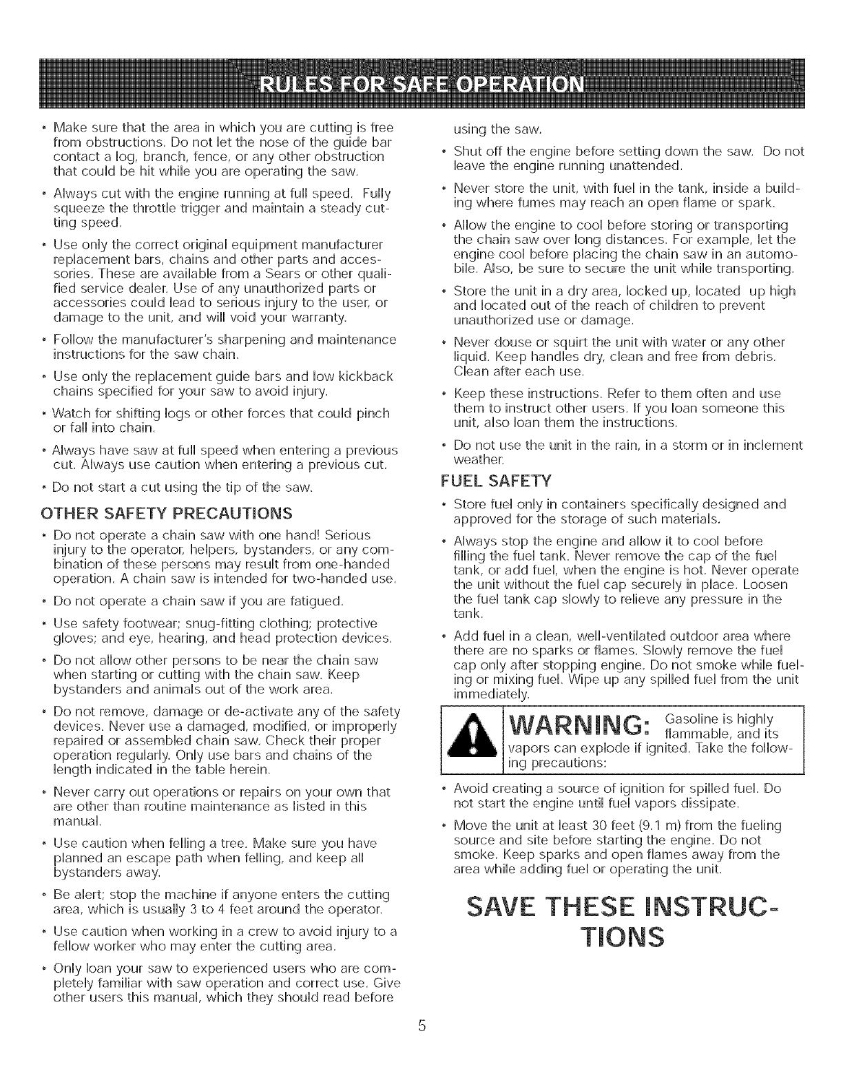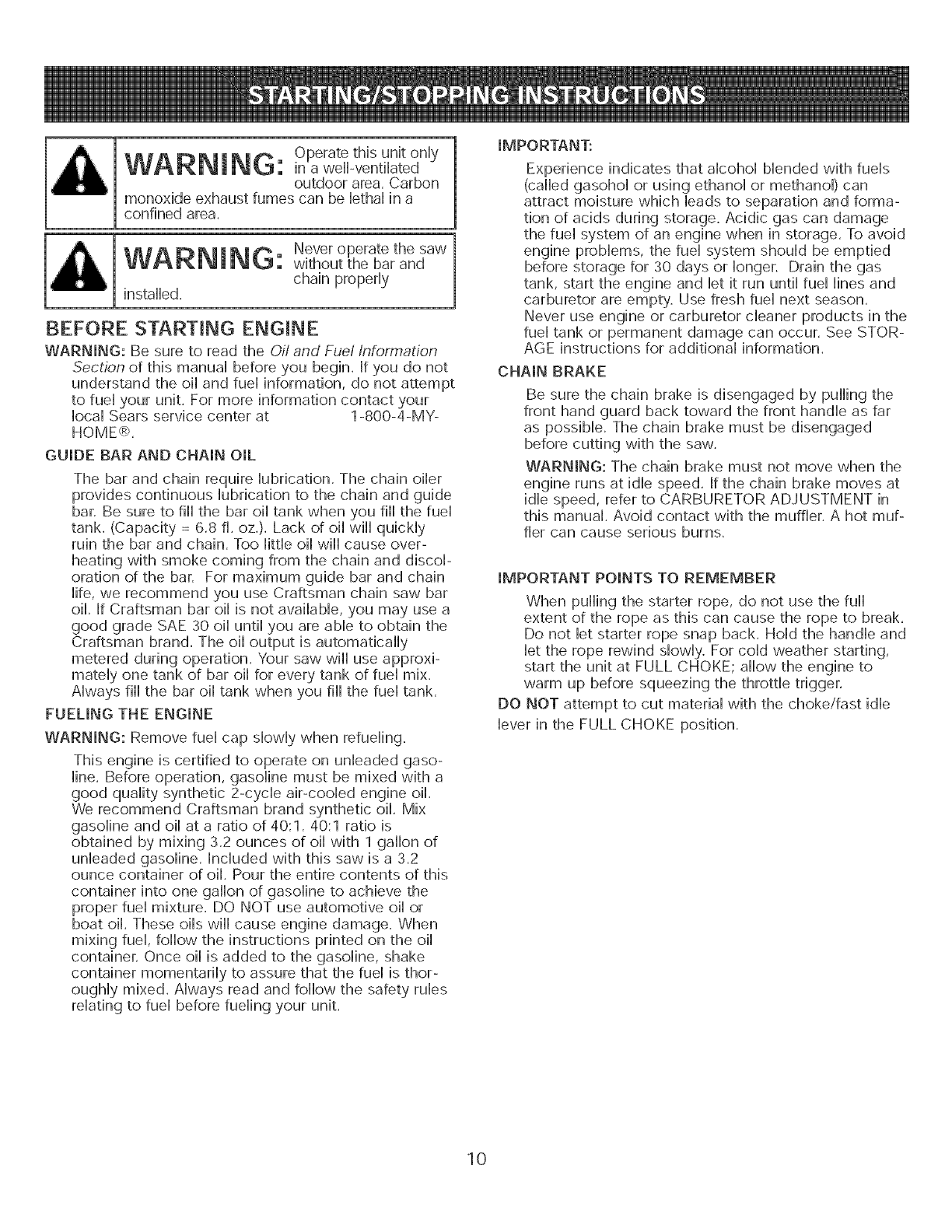 CRAFTSMAN Chainsaw, Gas Manual L0503335 CRAFTSMAN Chainsaw, Gas Owner's Manual, CRAFTSMAN Chainsaw, Gas installation guides