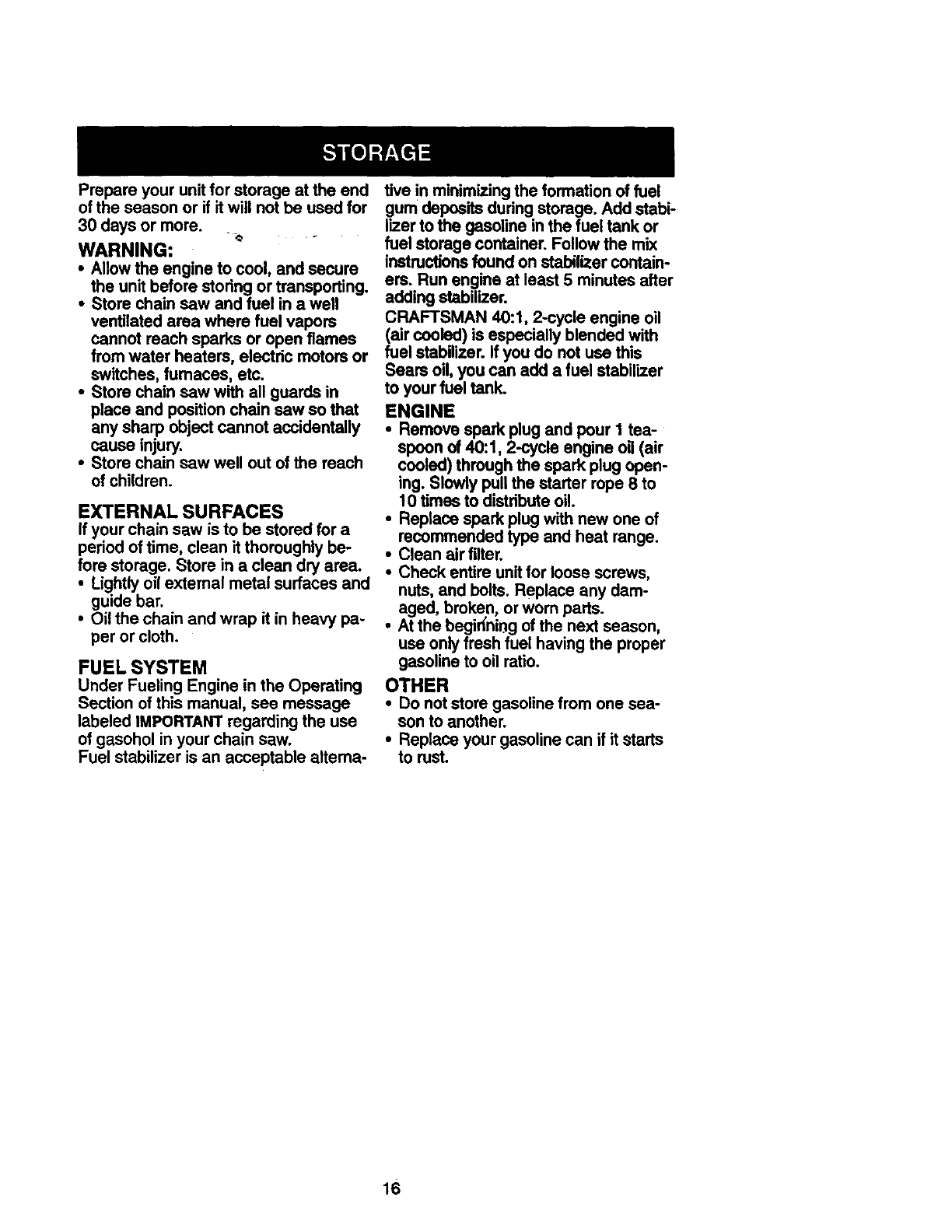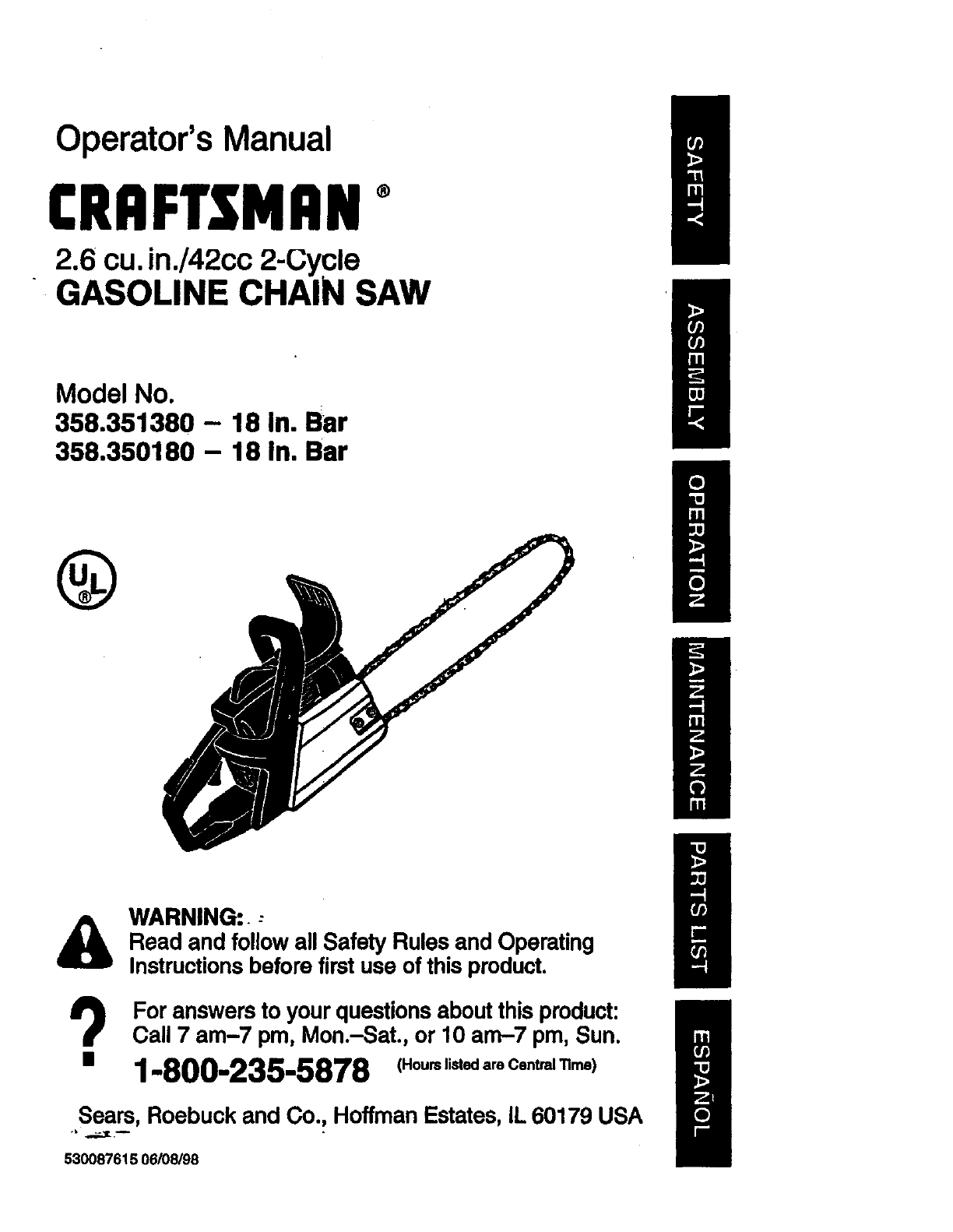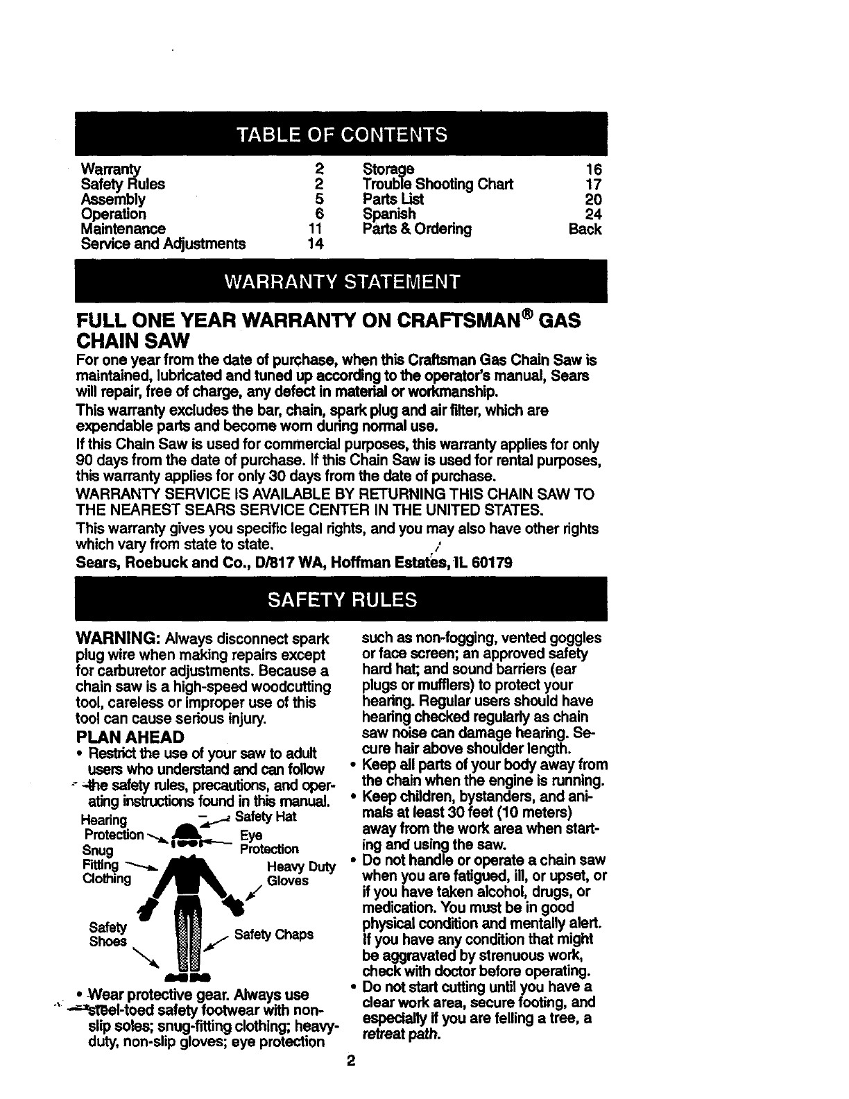 FULL ONE YEAR WARRANTY ON CRAFTSMAN ®GAS