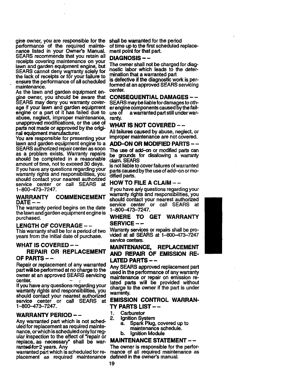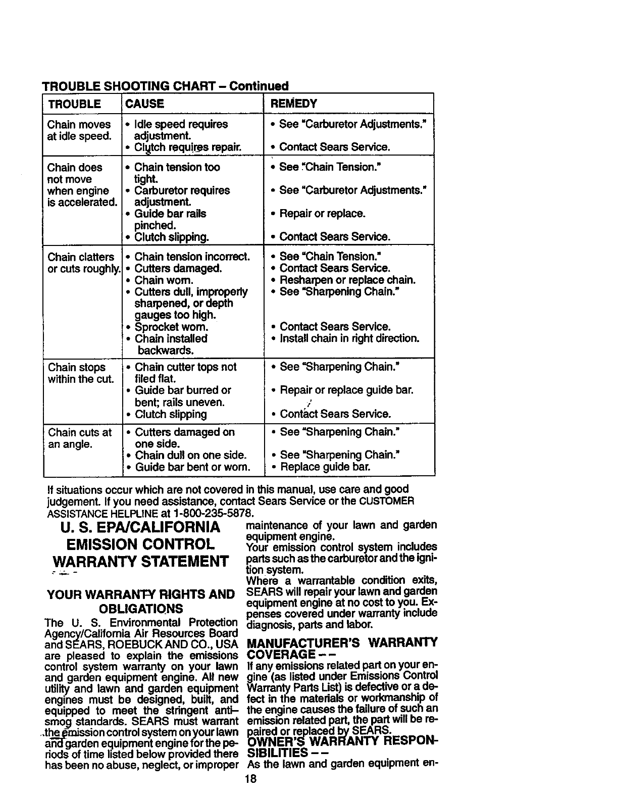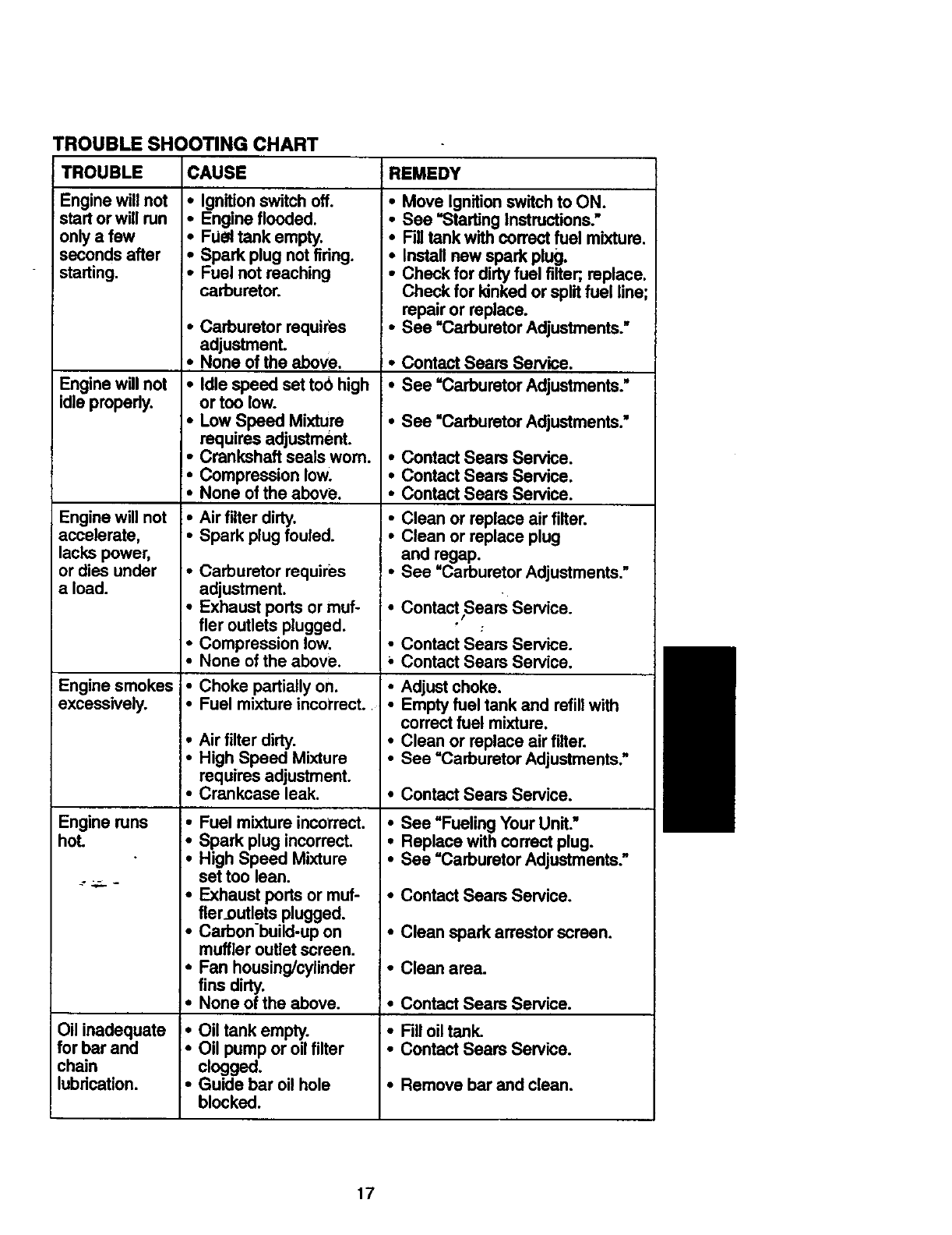maintained, lubricated and tuned up accordingto the operator's manual, Sears