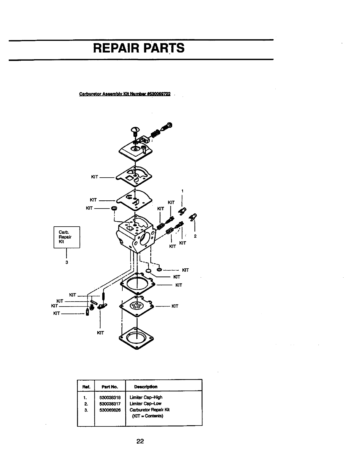 3. 530069826 CarburetorRepair Kit