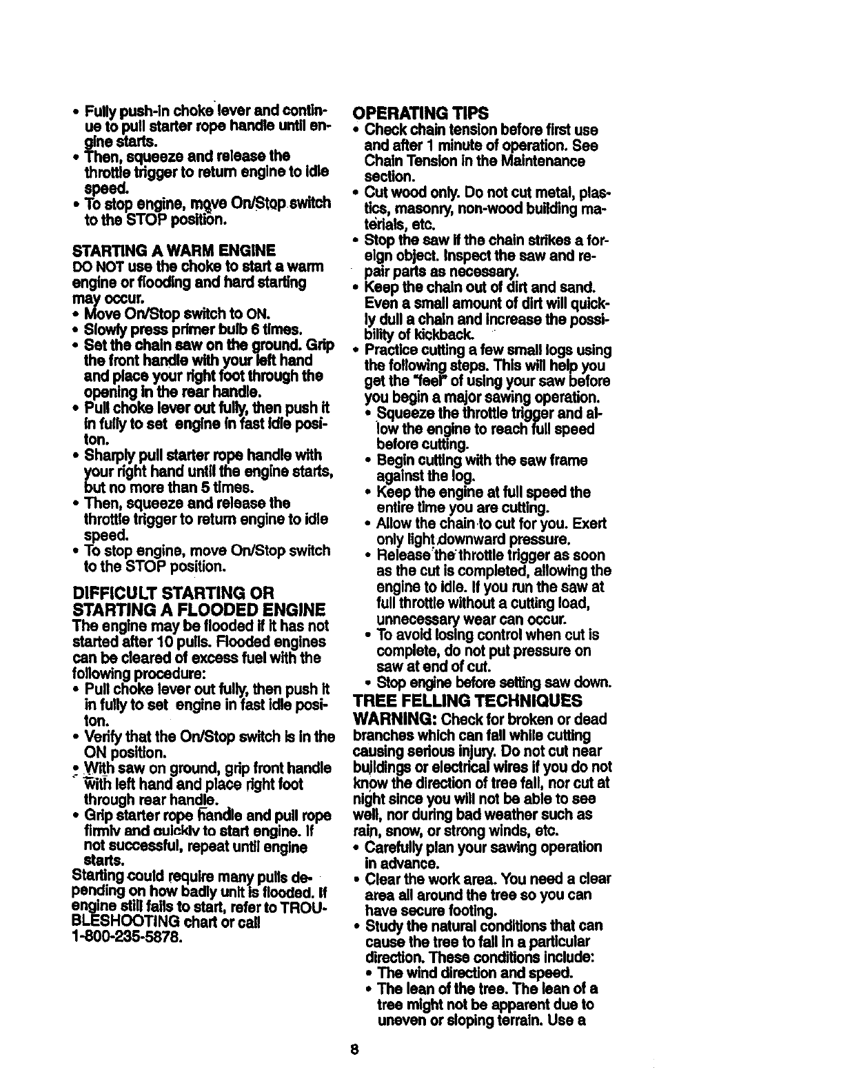 •Do not handle or operate a chain saw