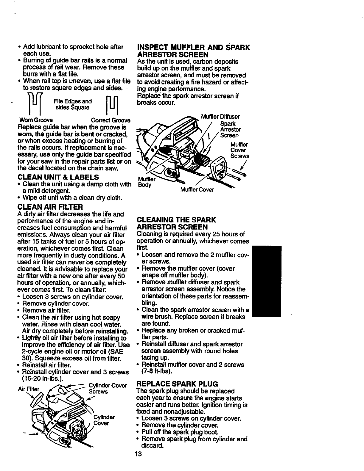 This warranty excludes the bar, chain, spark plug and air filter,which are