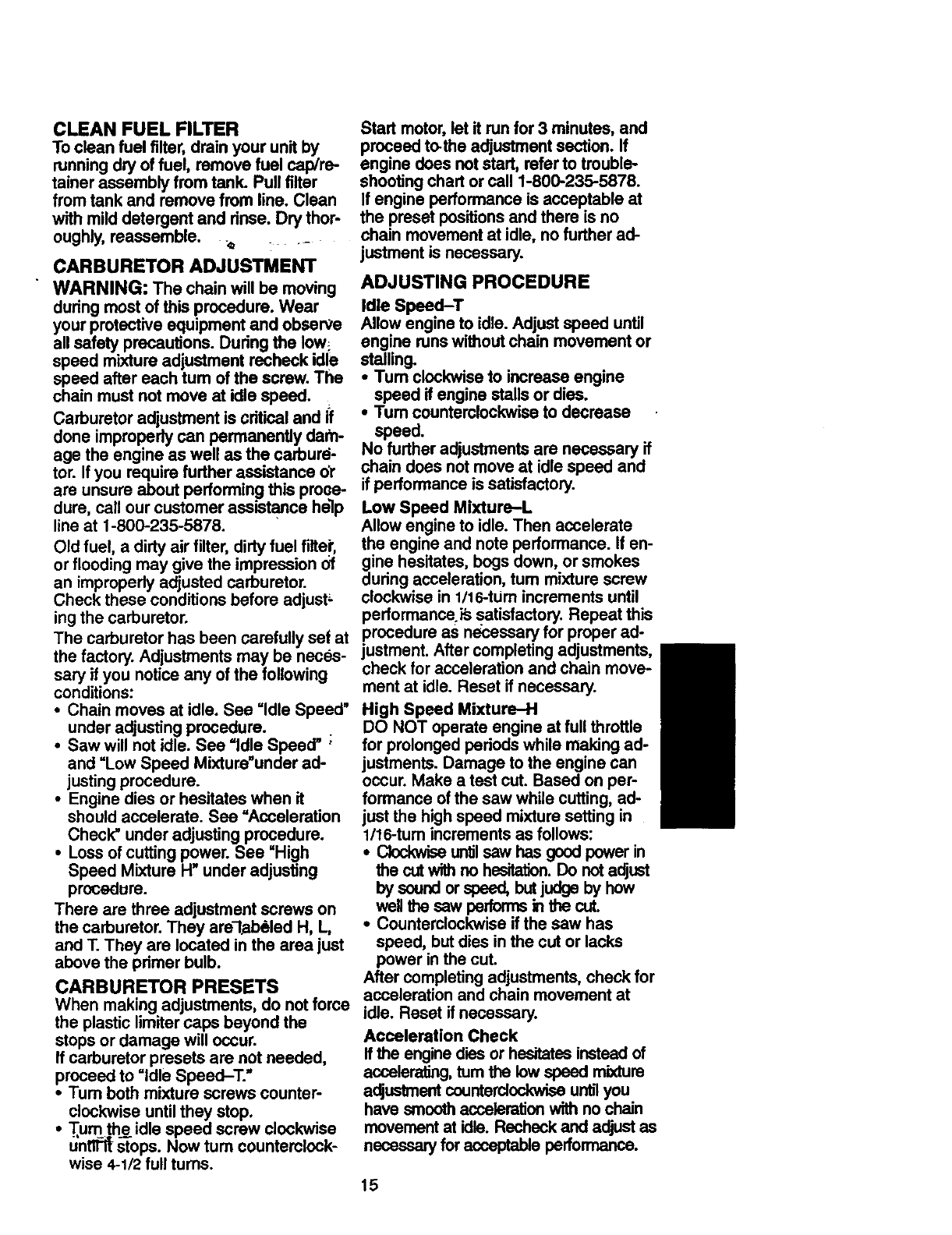 WARRANTY SERVICE IS AVAILABLE BY RETURNING THIS CHAIN SAW TO