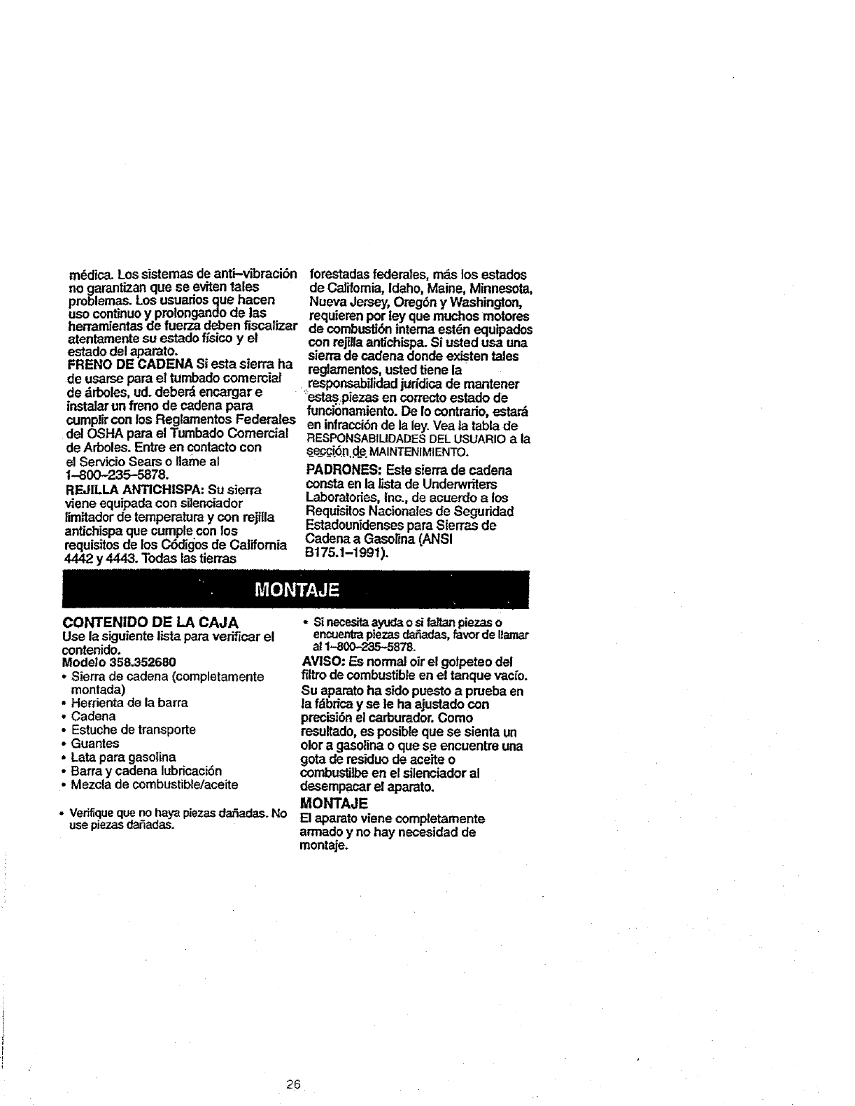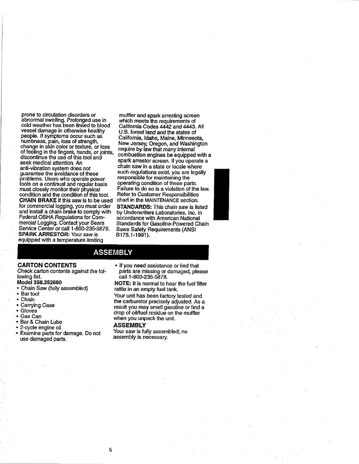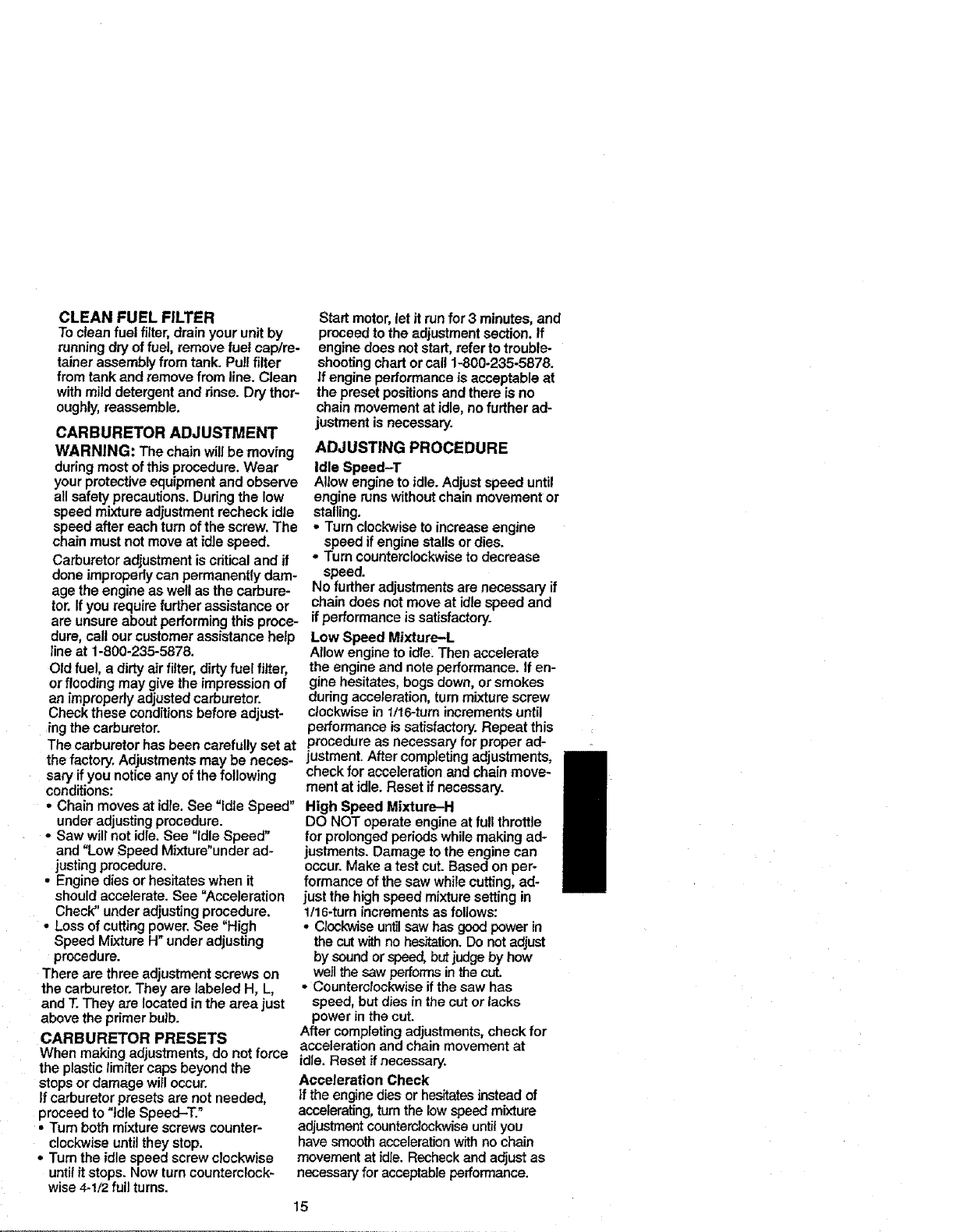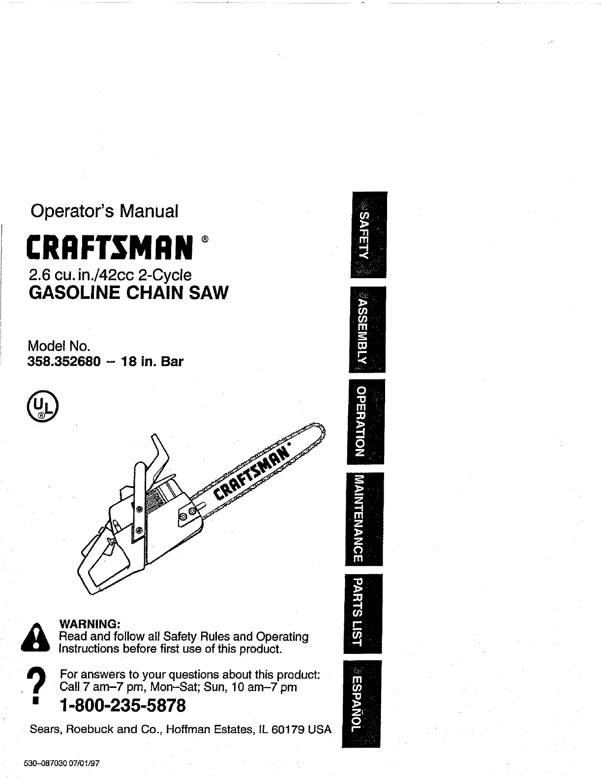 Craftsman 358 352680 18 In Bar Users Manual