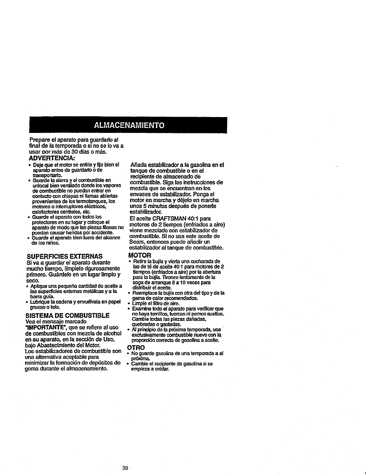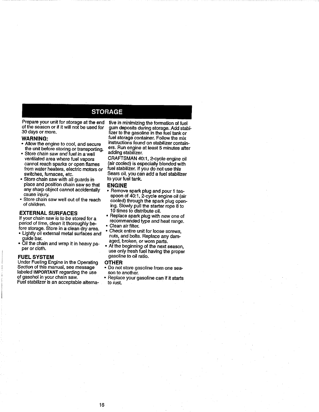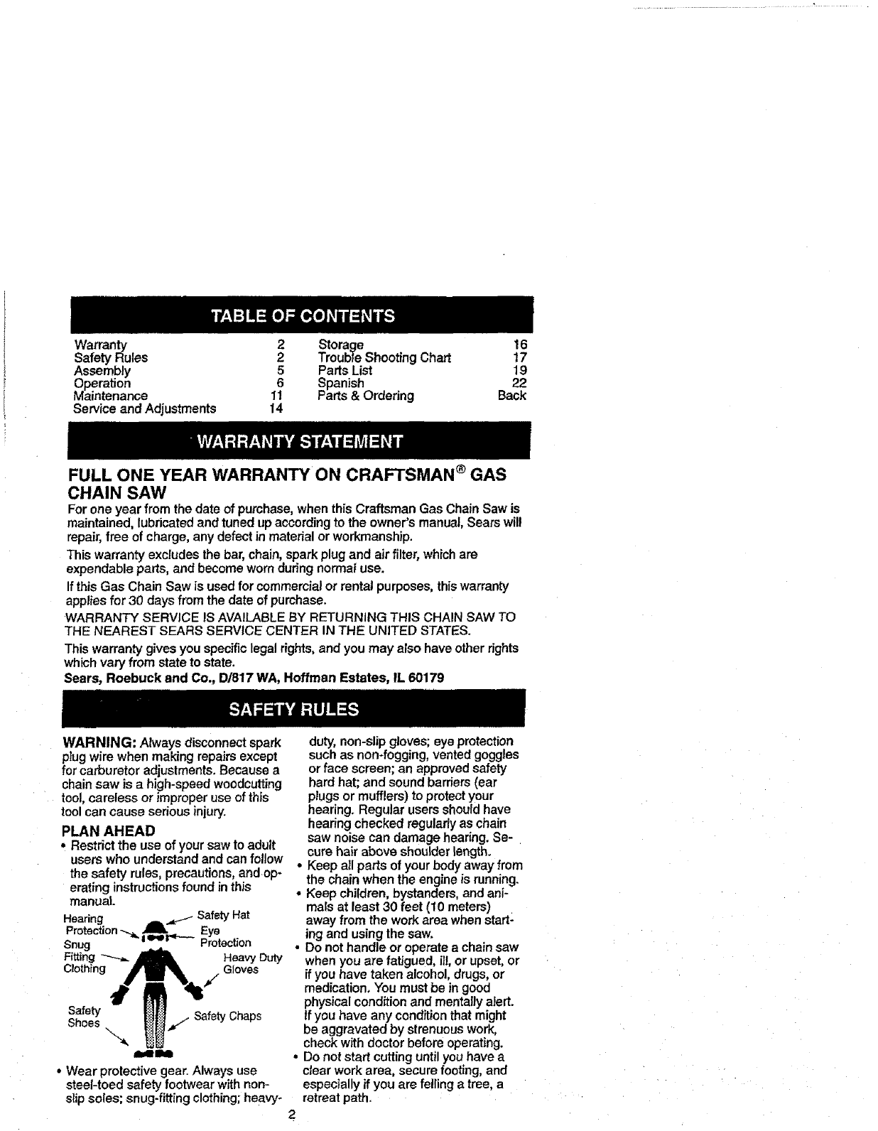 FULL ONE YEAR WARRANTY ON CRAFTSMAN ®GAS