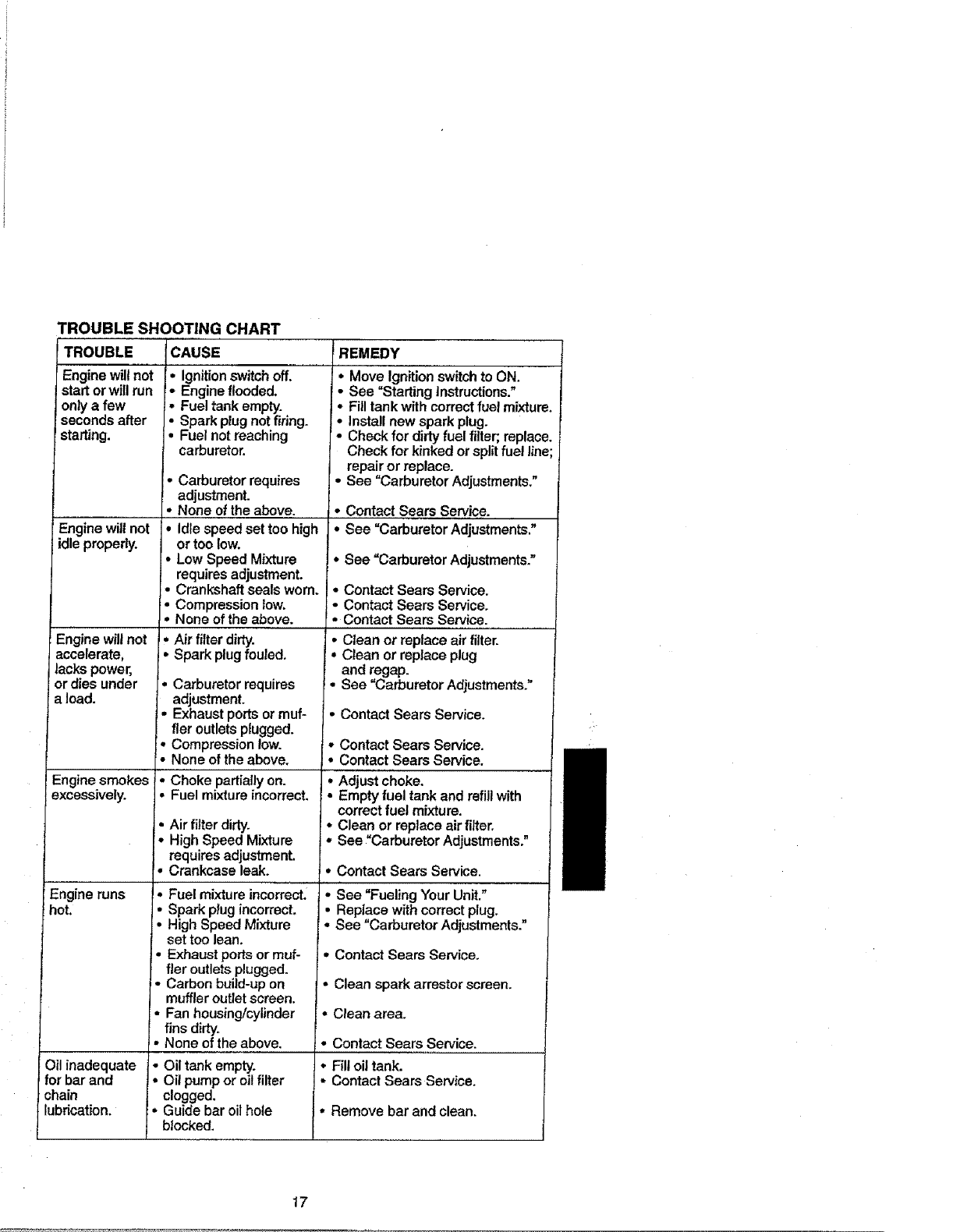 Safety Rules 2Trouble Shooting Chart 17