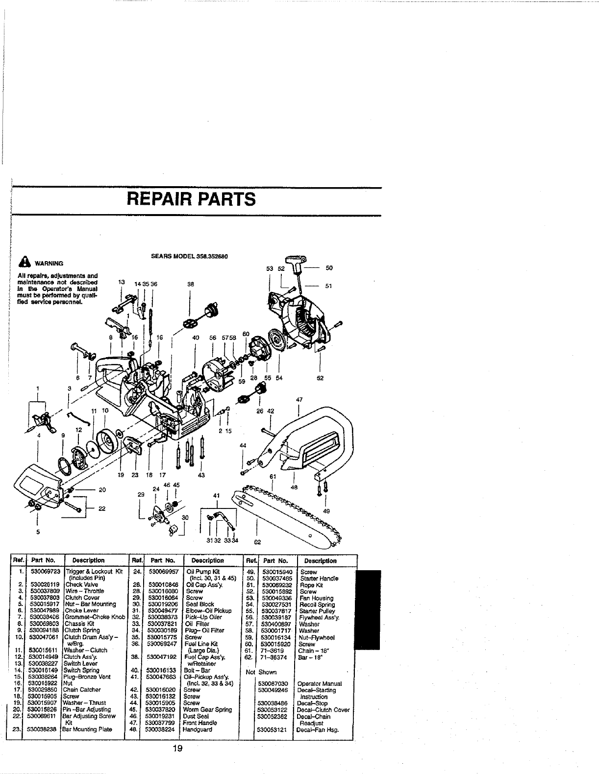 358352680 358352680 CRAFTSMAN CHAIN SAW - Manuals and Guides L0707156 View the owners manual for your CRAFTSMAN CHAIN SAW #358352680. Home:Lawn & Garden Parts:Craftsman Parts:Craftsman CHAIN SAW Manual