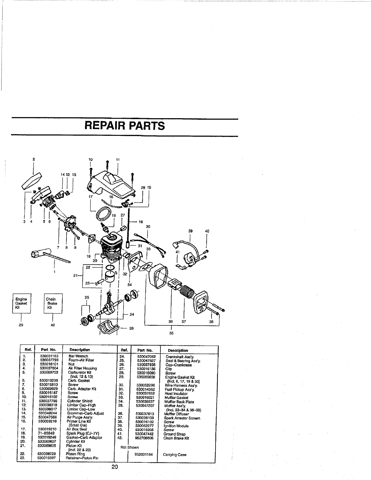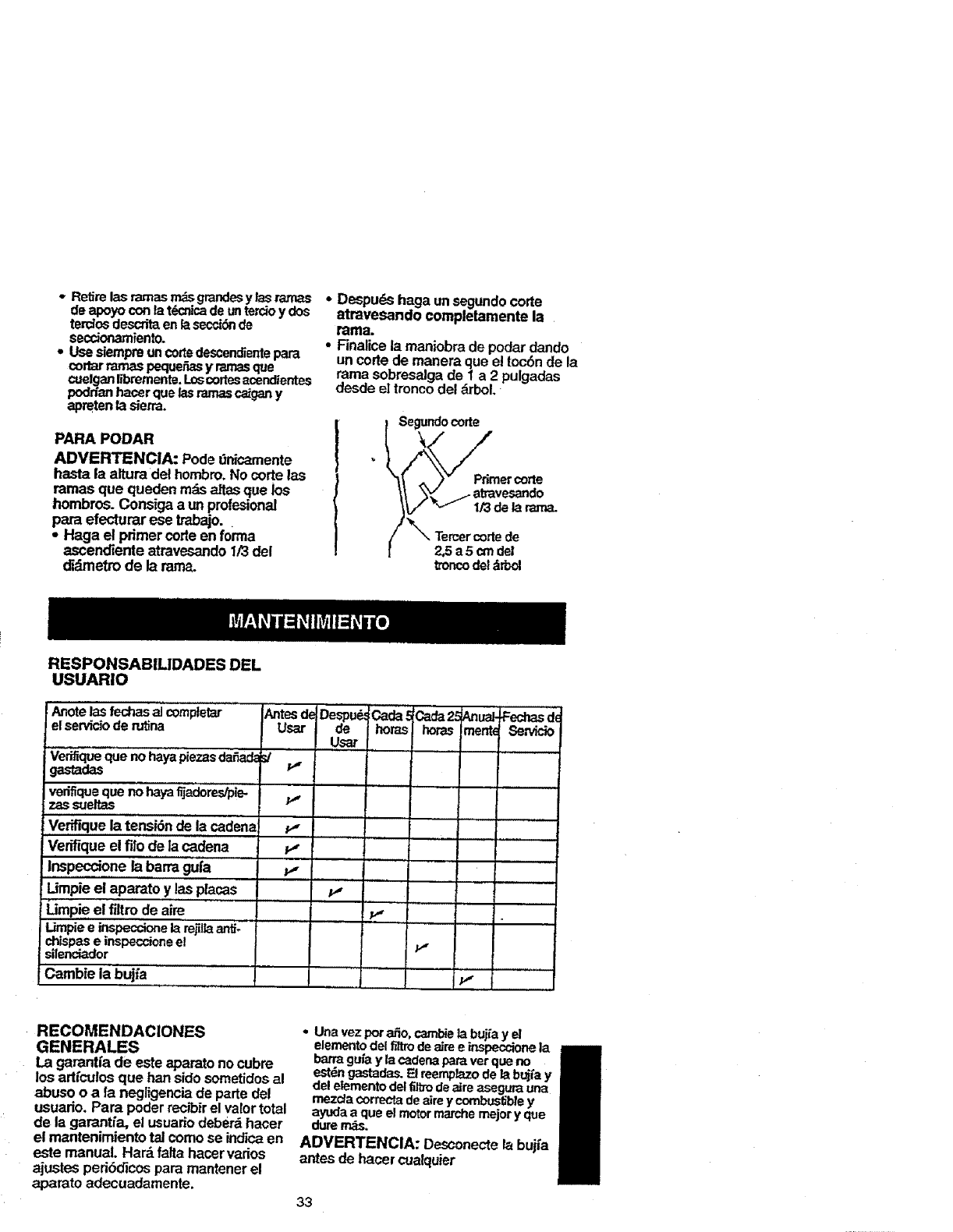 This warranty excludes the bar, chain, spark plug and air filter, which are
