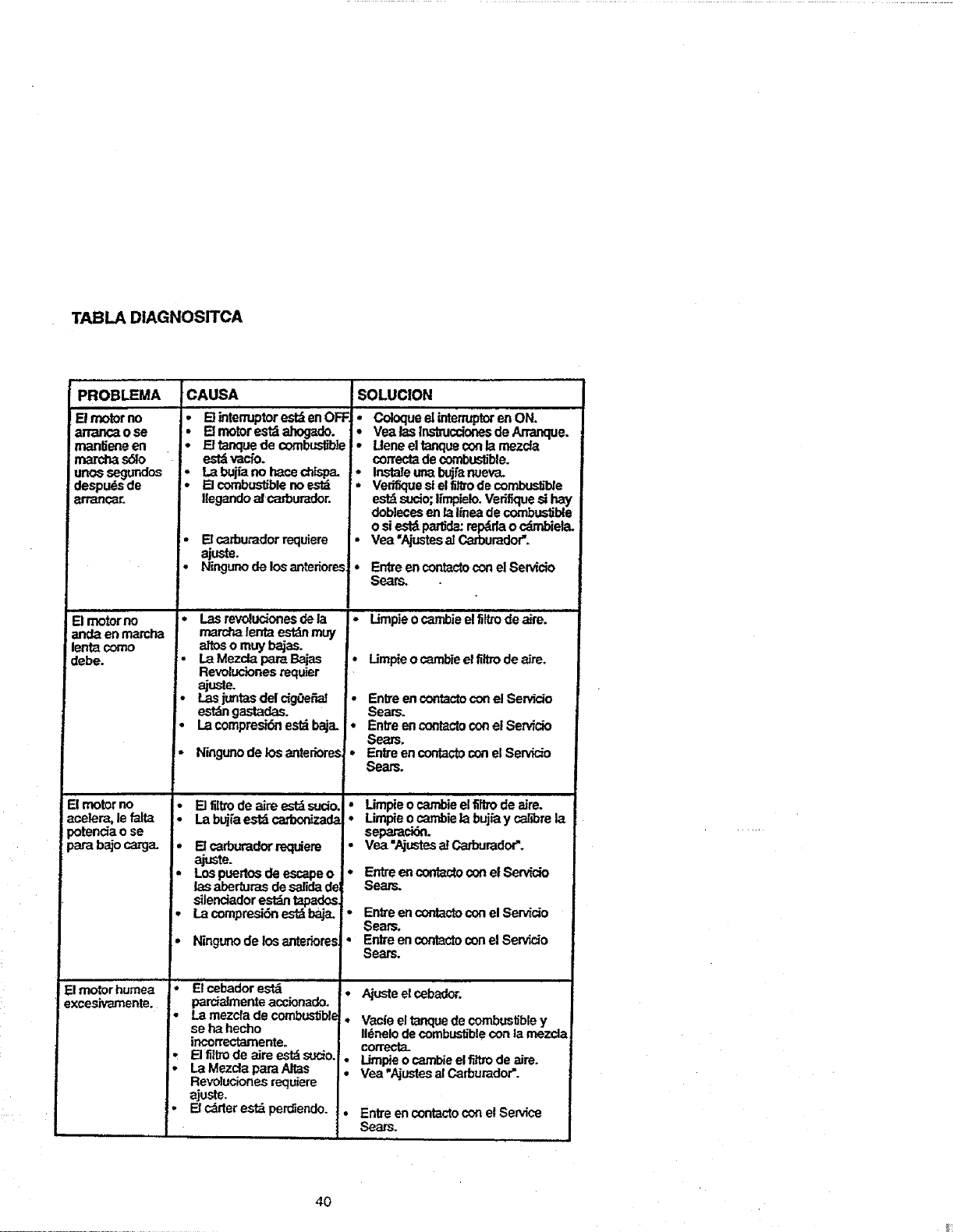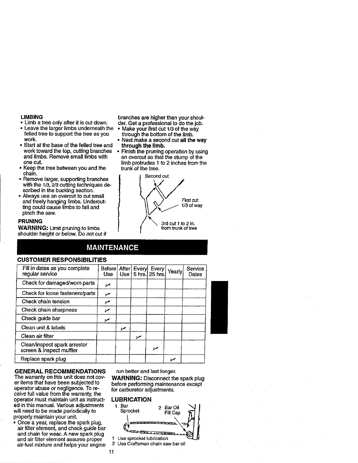 maintained, lubricated and tuned up according to the owner's manual, Sears will