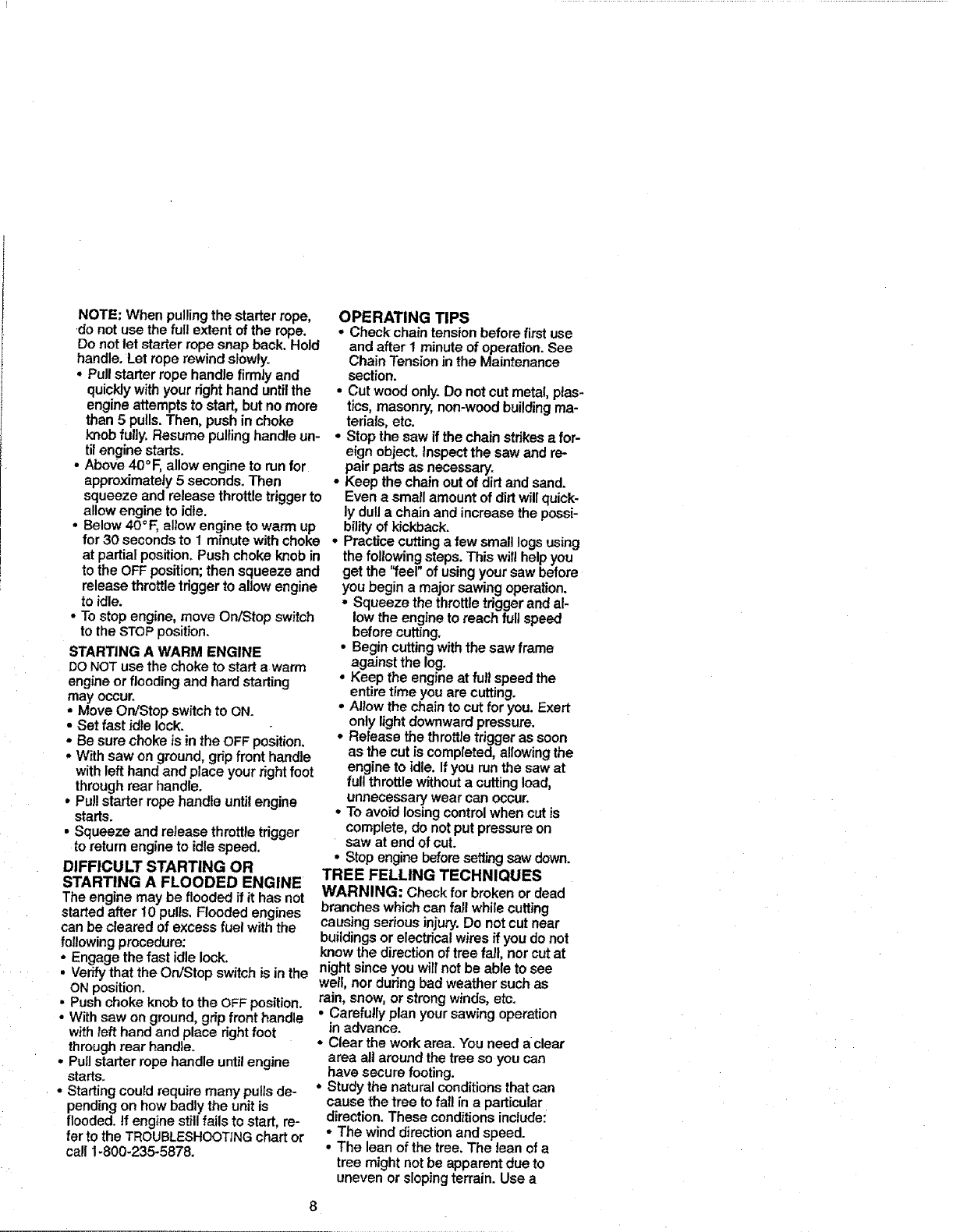 •Operate the chain saw only in a well-