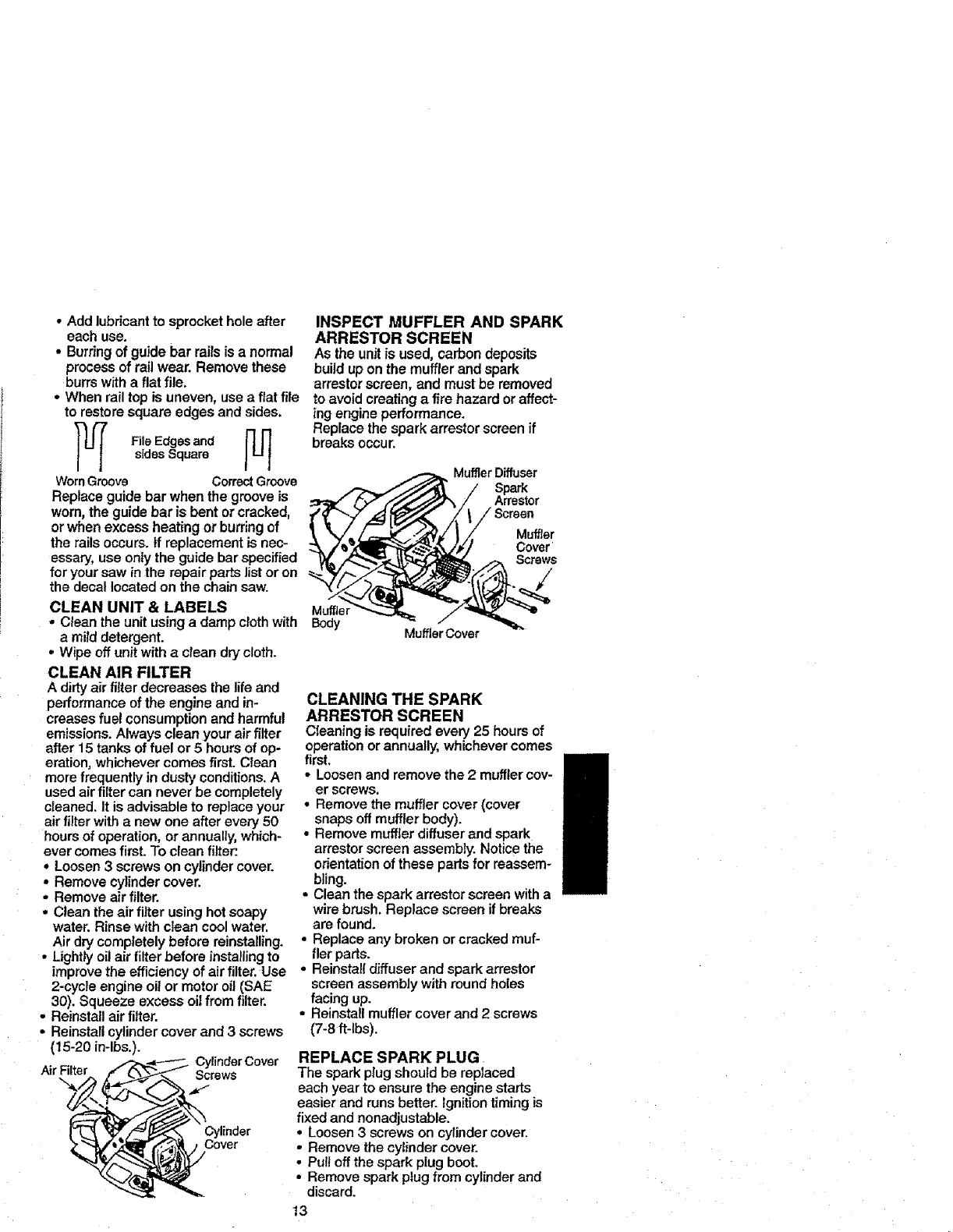 35835268018inbar 3ce32649-6f24-45fe-be42-5916331811a3 Craftsman Chainsaw 358.352680 - 18 IN. BAR User Guide |