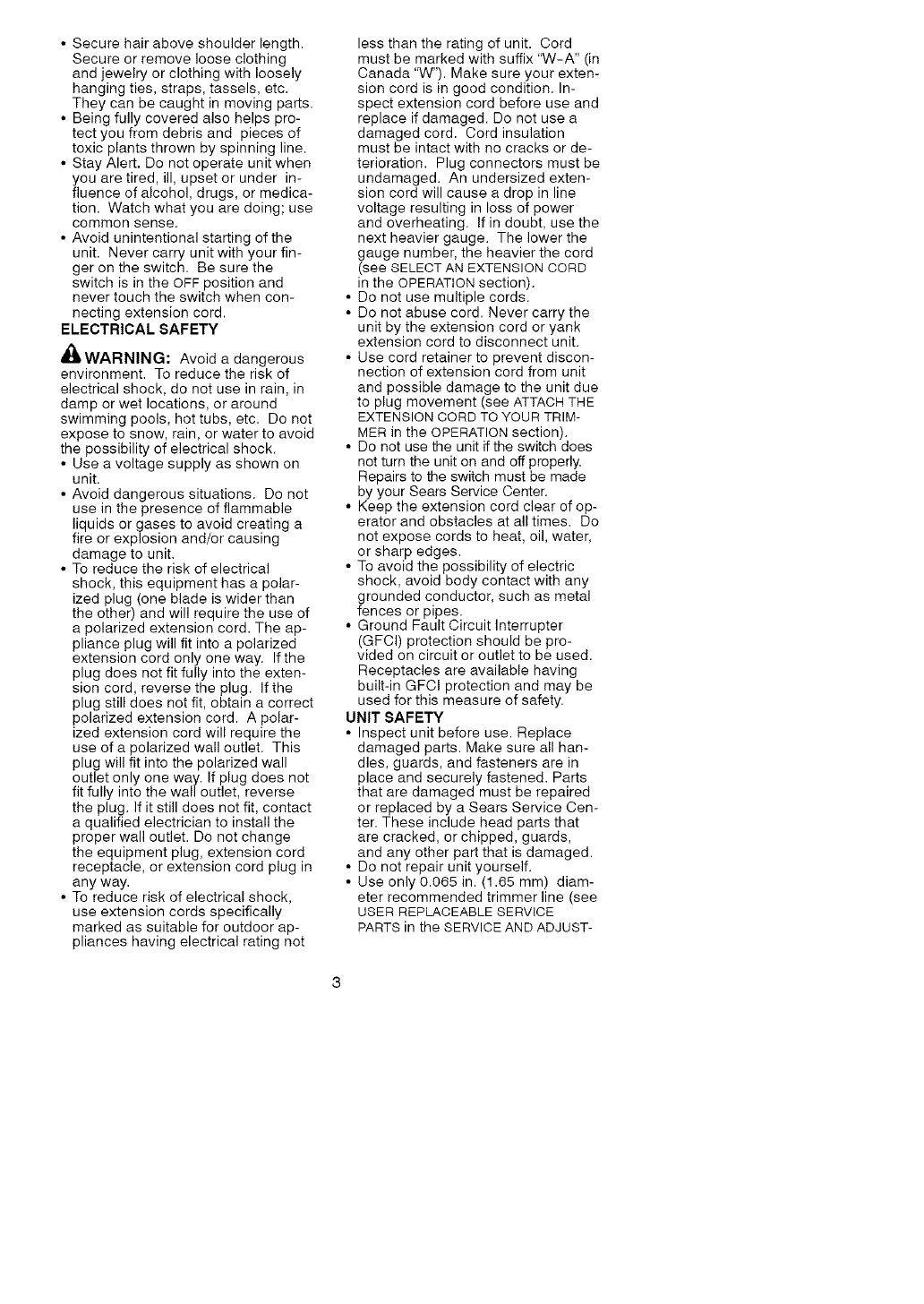 tenance on your unit. (Safety
