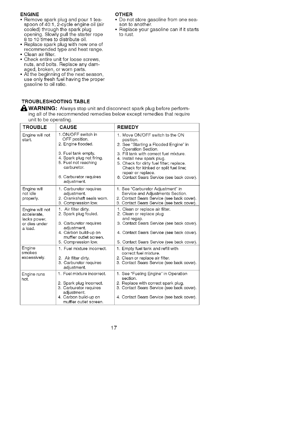 This warranty excludes cutting line, spark plug and air filter, which are expendable