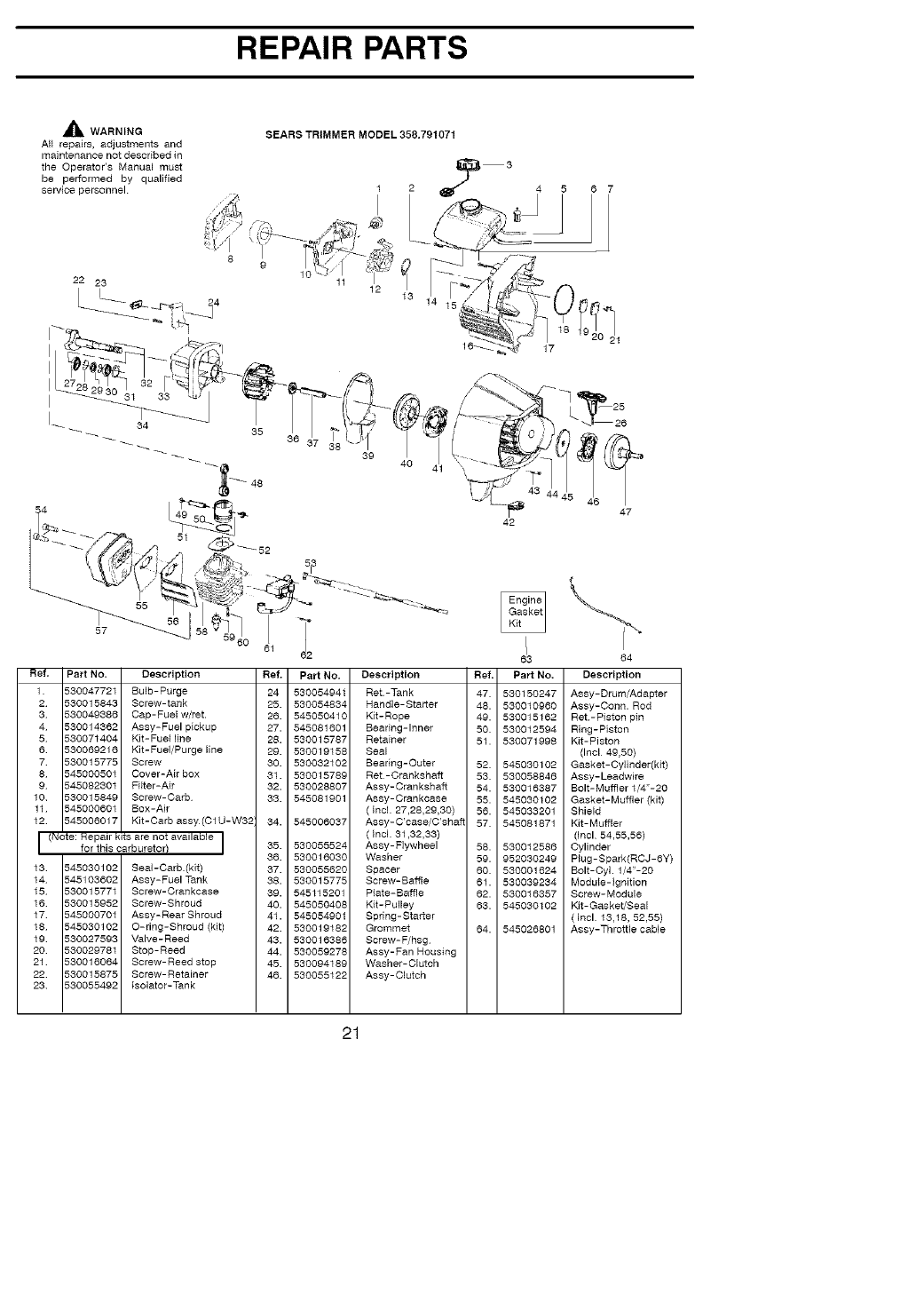 358791071 358791071 CRAFTSMAN TRIMMER - Manuals and Guides L0803165 View the owners manual for your CRAFTSMAN TRIMMER #358791071. Home:Lawn & Garden Parts:Craftsman Parts:358791071 Craftsman Grass trimmer (weed wacker) Manual