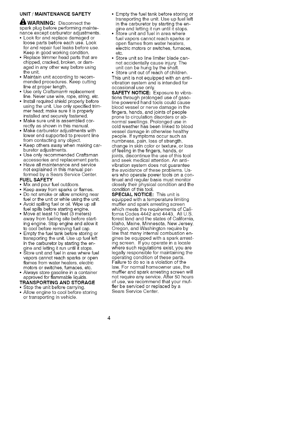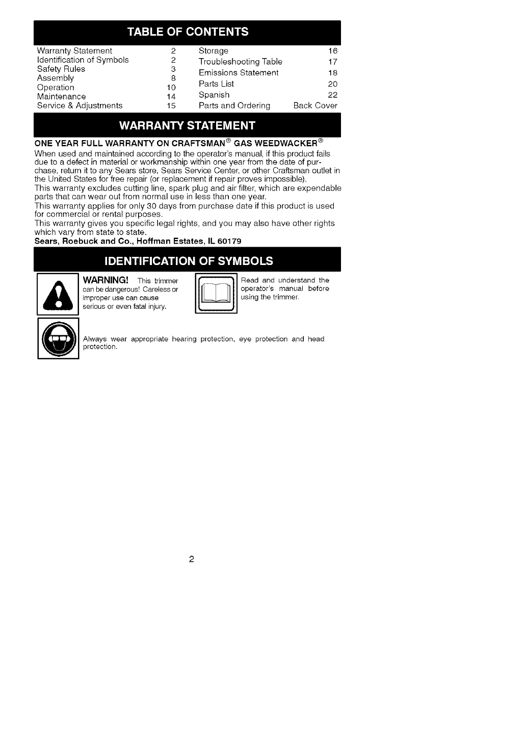ONE YEAR FULL WARRANTY ON CRAFTSMAN ® GAS WEEDWACKER ®