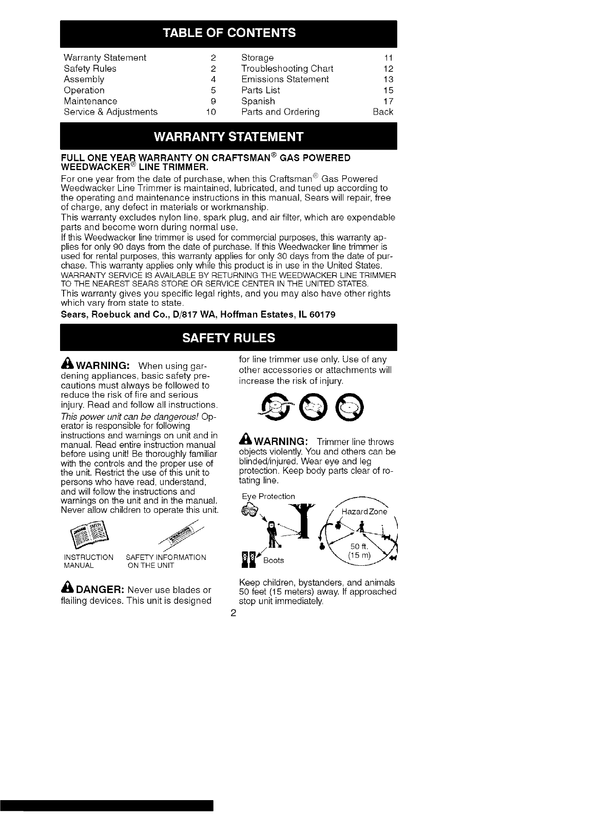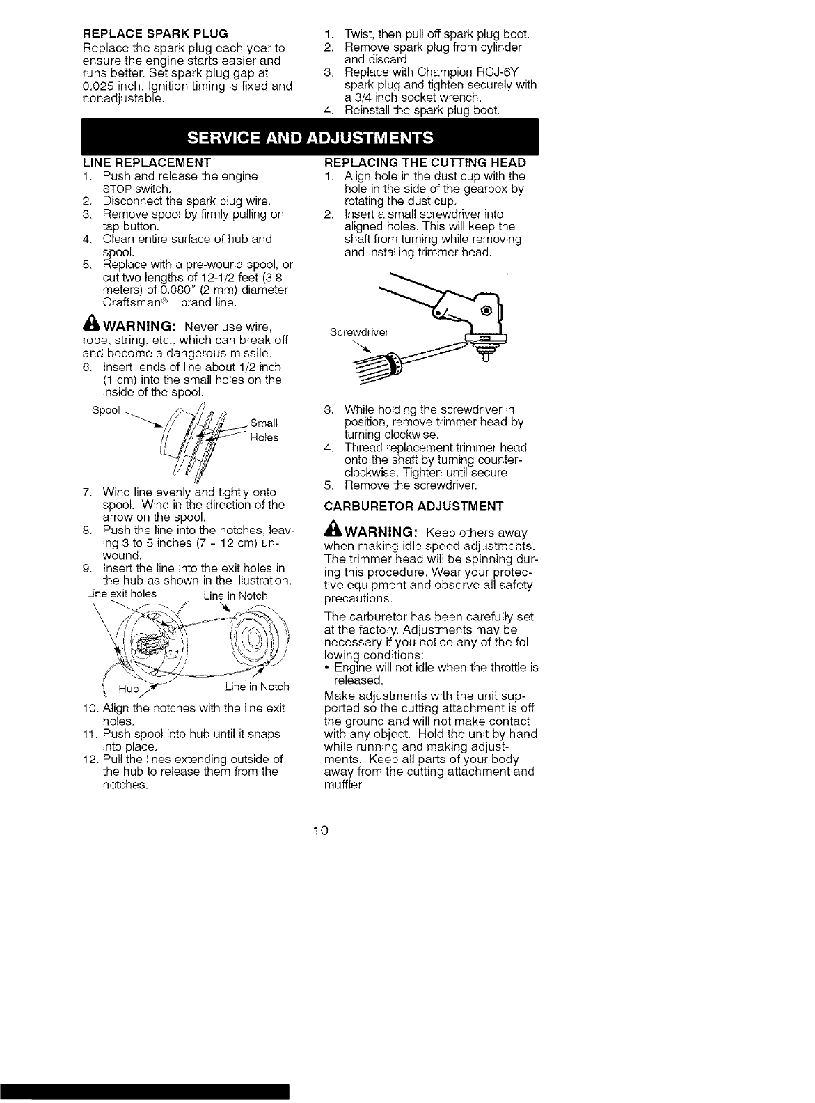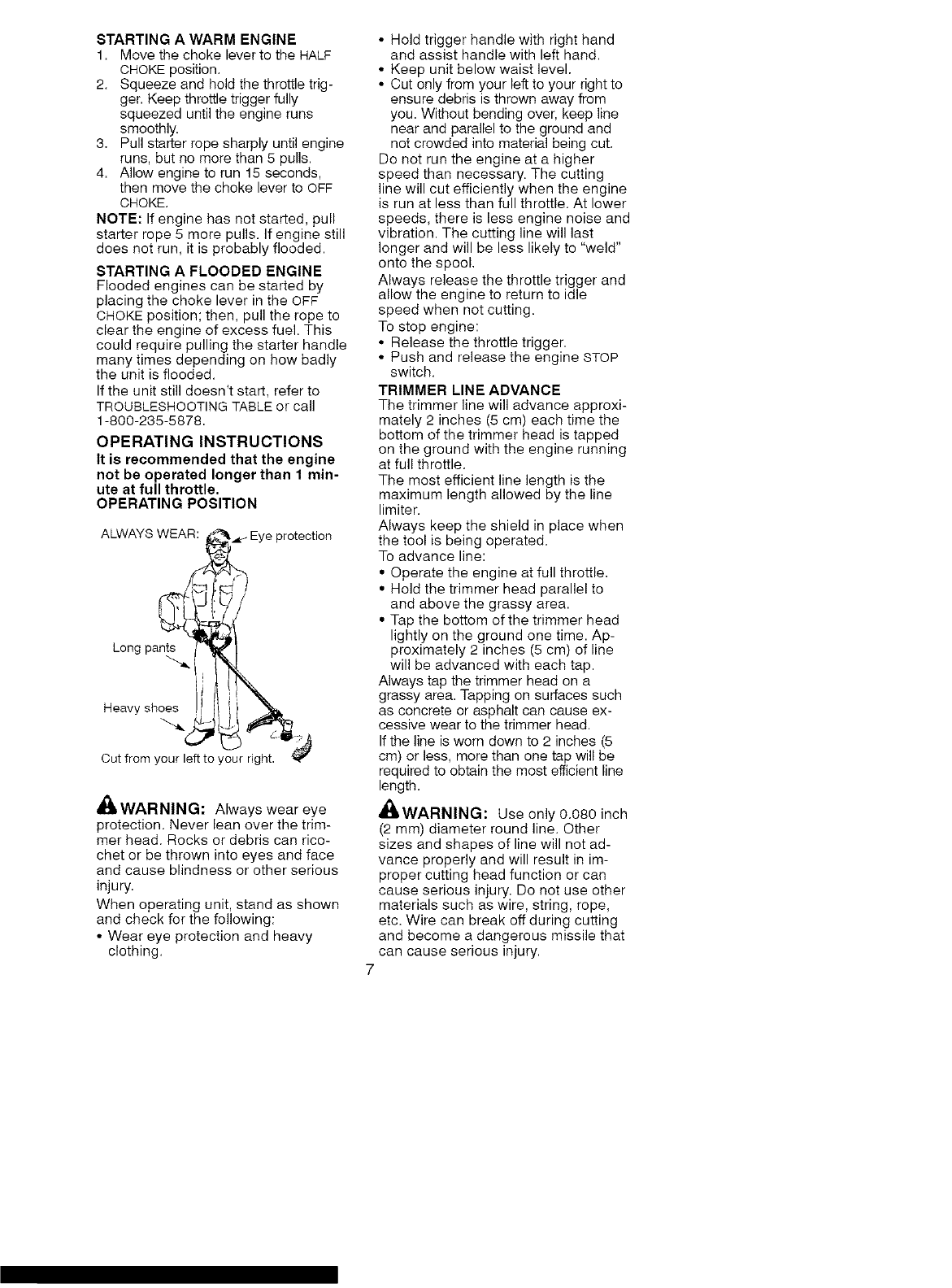 This warranty excludes nylon line, spark plug, and air filter, which are expendable