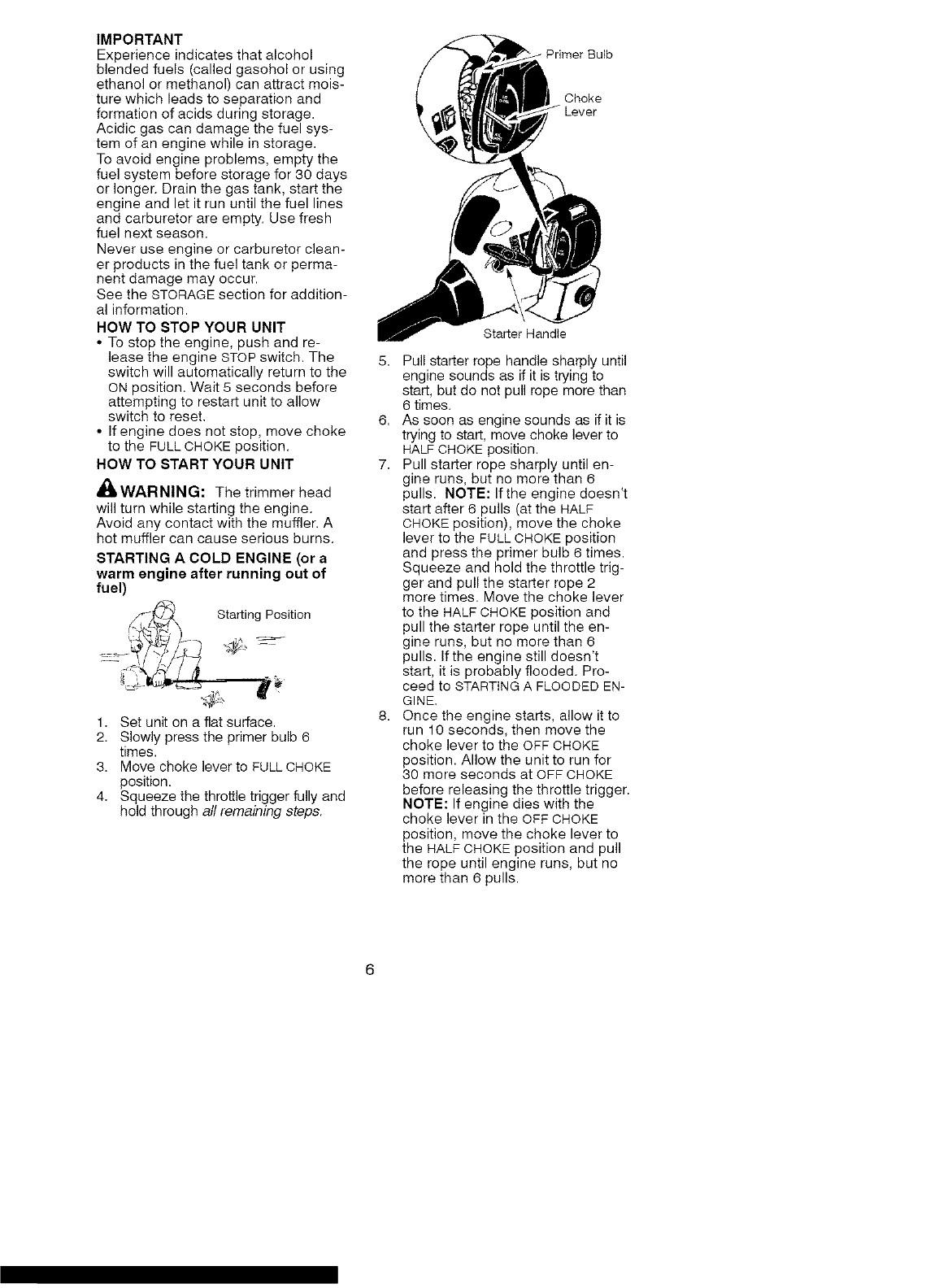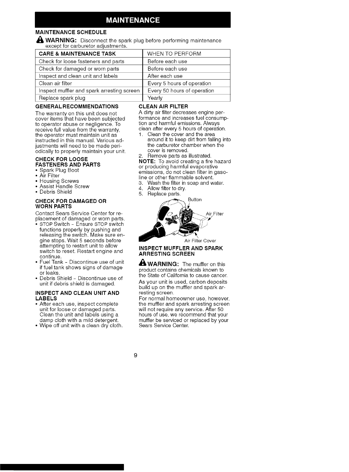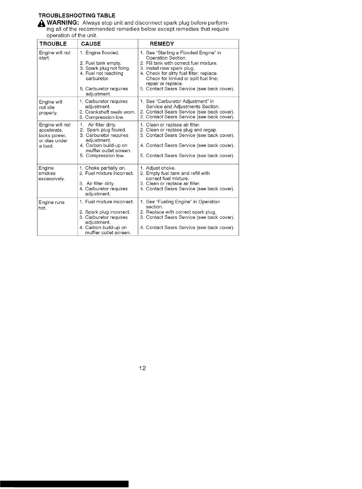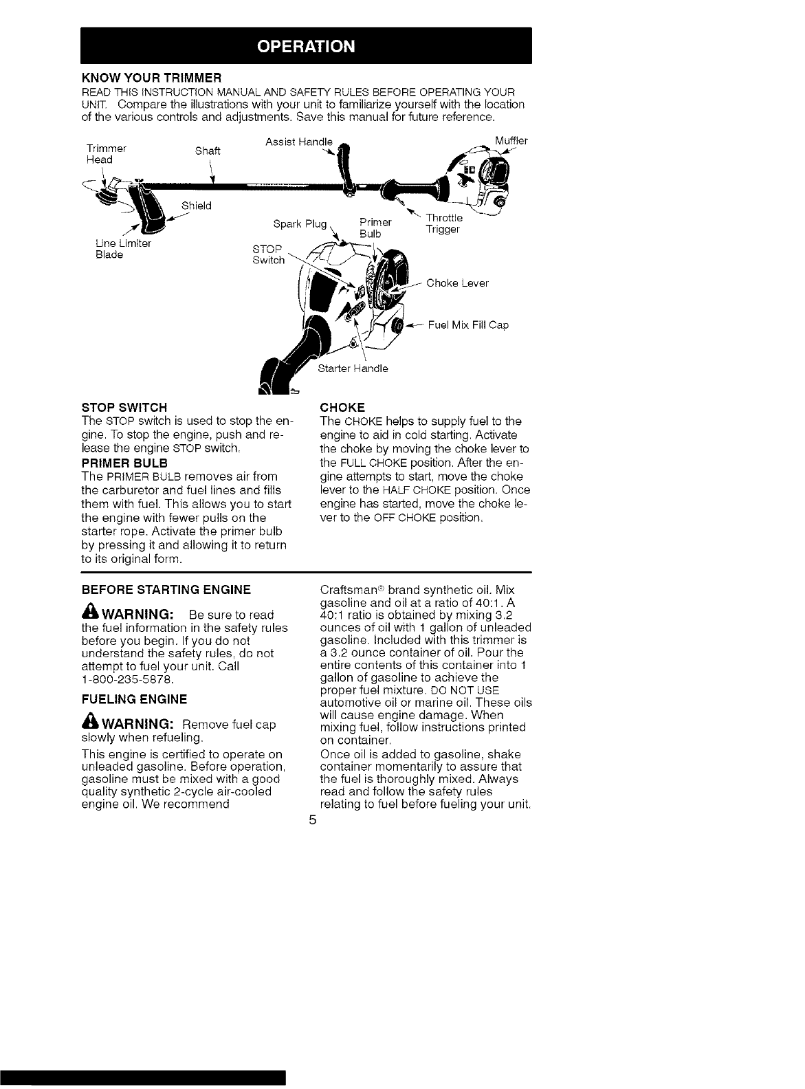 This warranty excludes nylon line, spark plug, and air filter, which are expendable