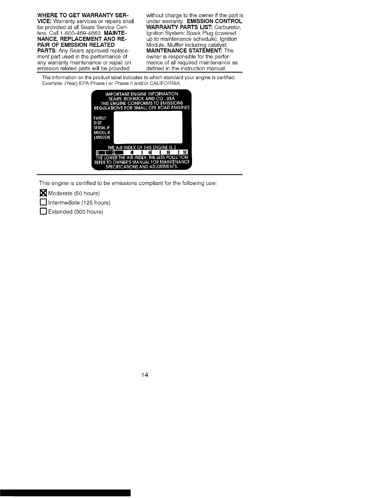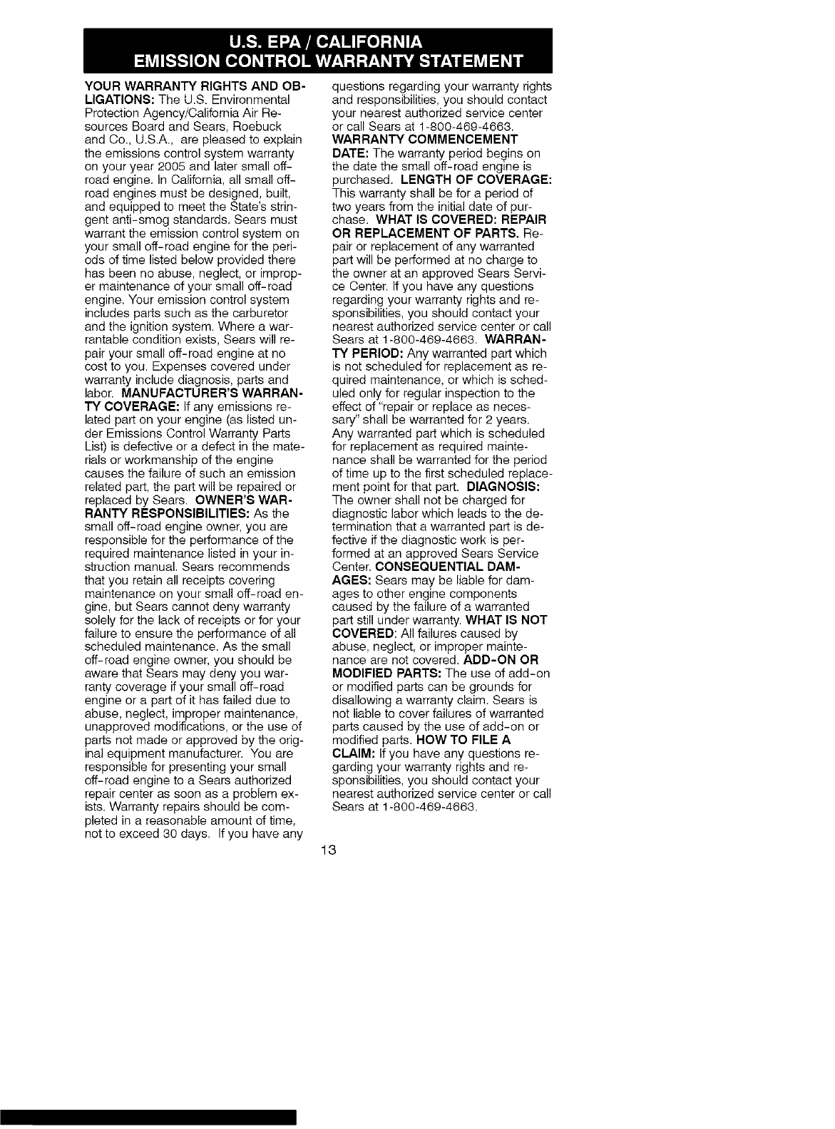 FULL ONE YEAR WARRANTY ON CRAFTSMAN ® GAS POWERED