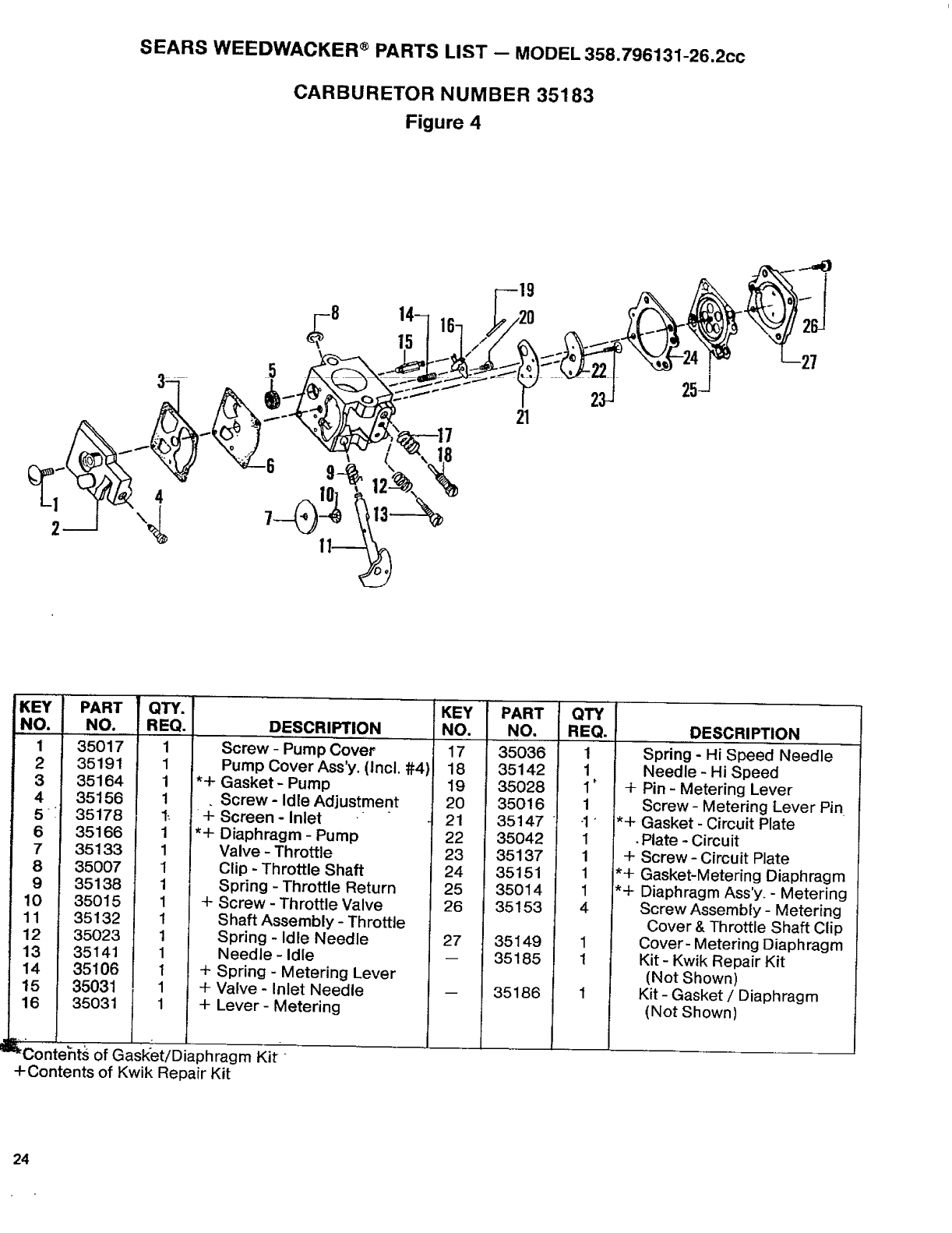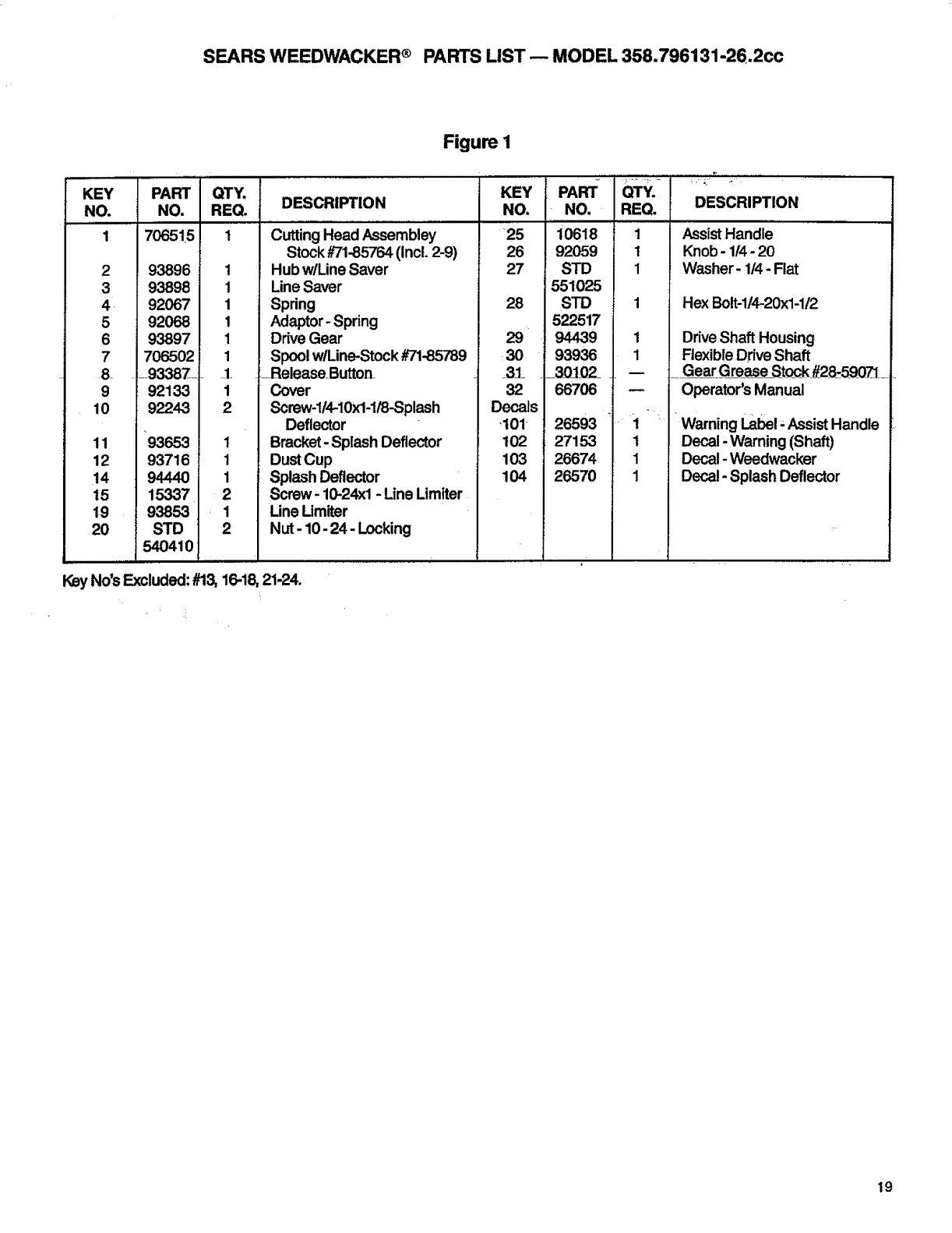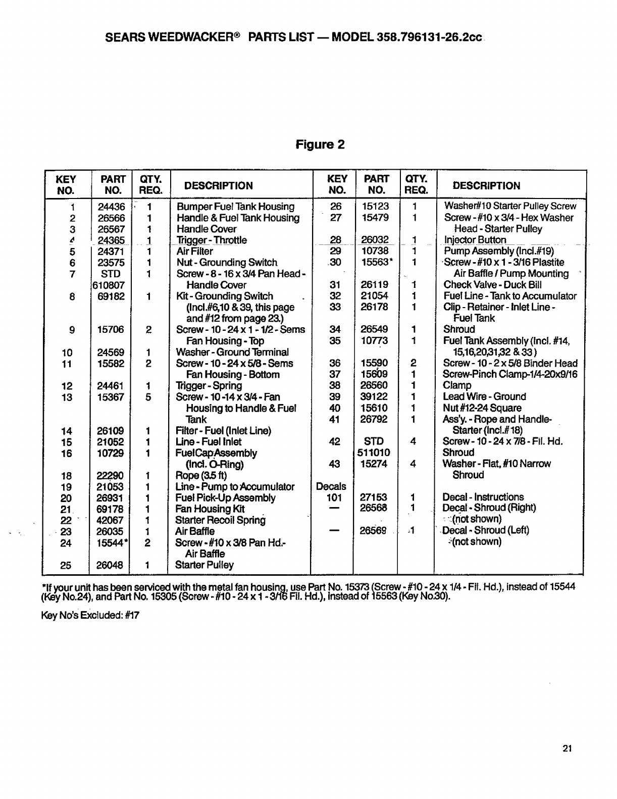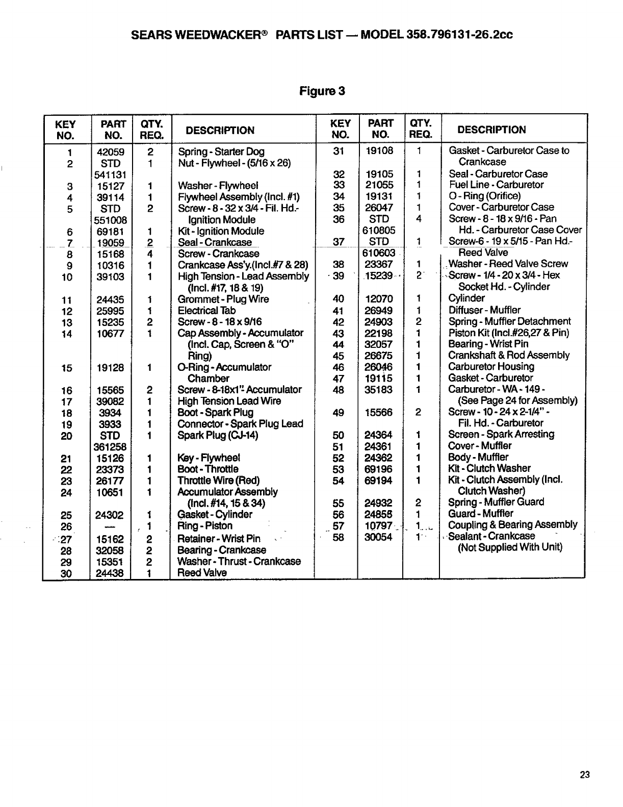 358796131 358796131 CRAFTSMAN SEARS WEEDWACKER - Manuals and Guides 1007217L View the owners manual for your CRAFTSMAN SEARS WEEDWACKER #358796131. Home:Lawn & Garden Parts:Craftsman Parts:358796131 Craftsman Grass trimmer (weed wacker) Manual