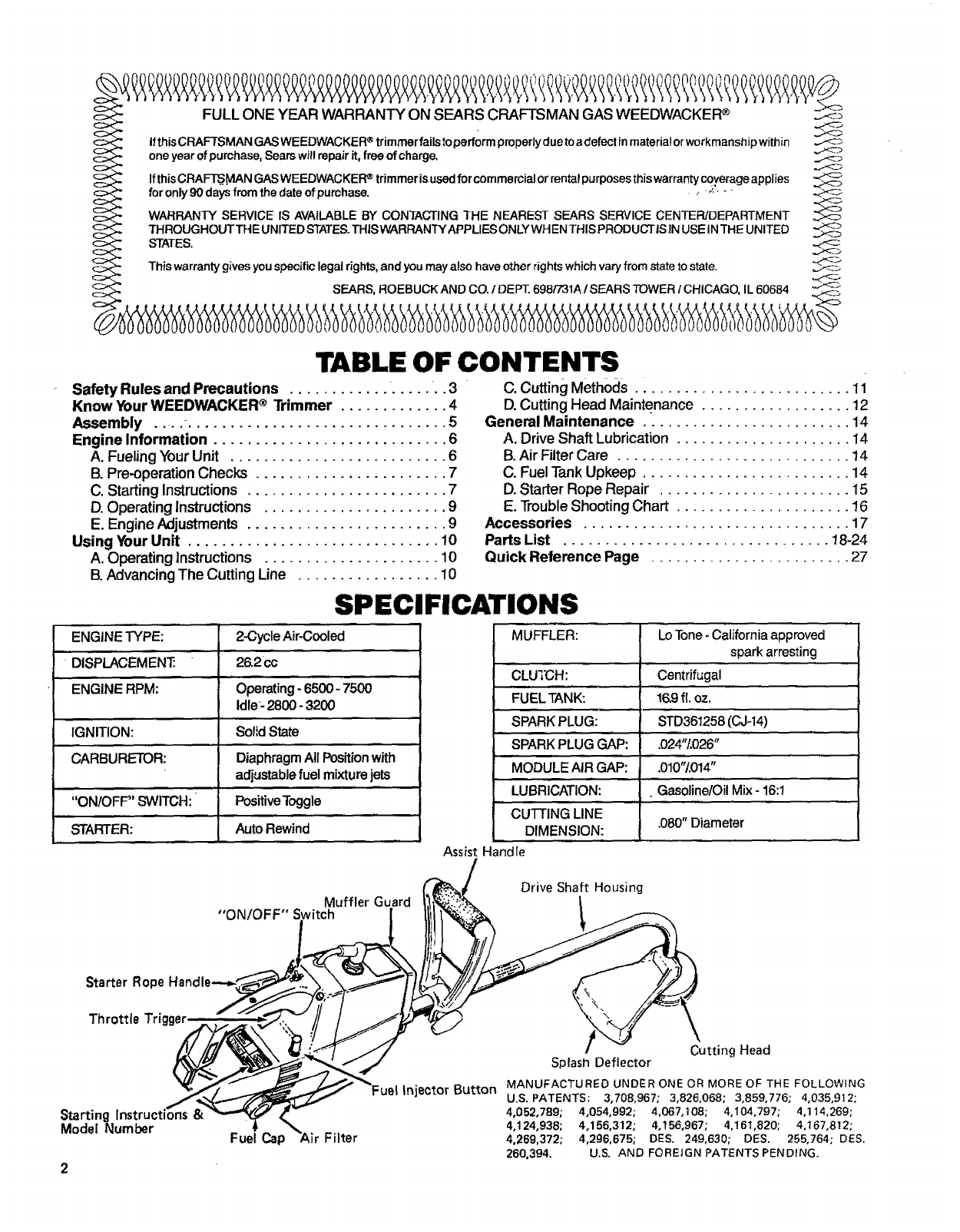 FULL ONE YEAR WARRANTY ON SEARS CRAFTSMAN GAS WEEDWACKER