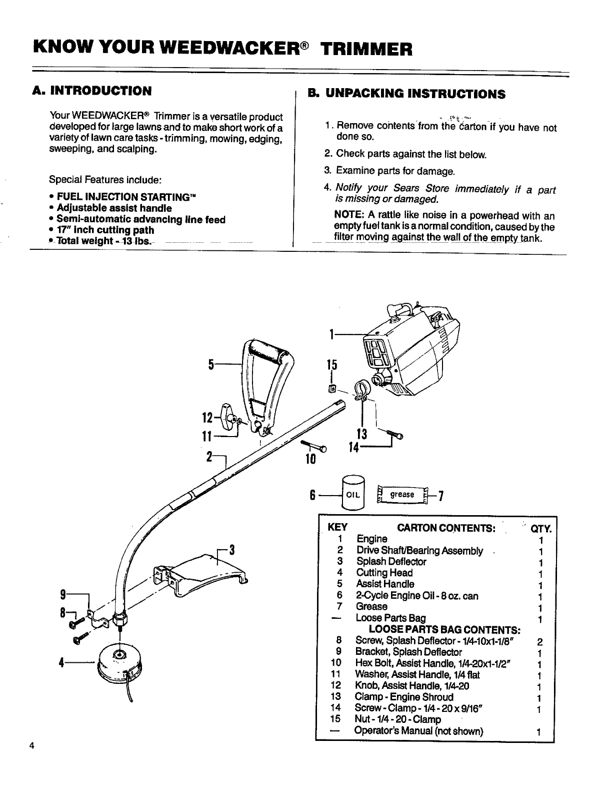 Know Your WEEDWACKER ®Trimmer ............. 4