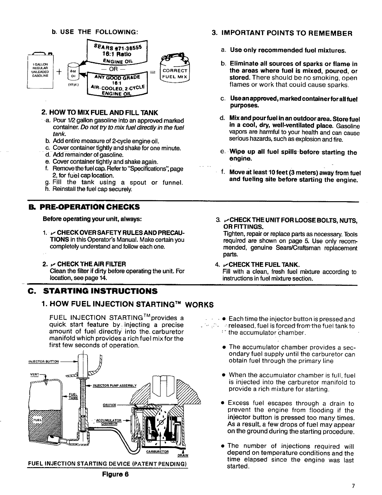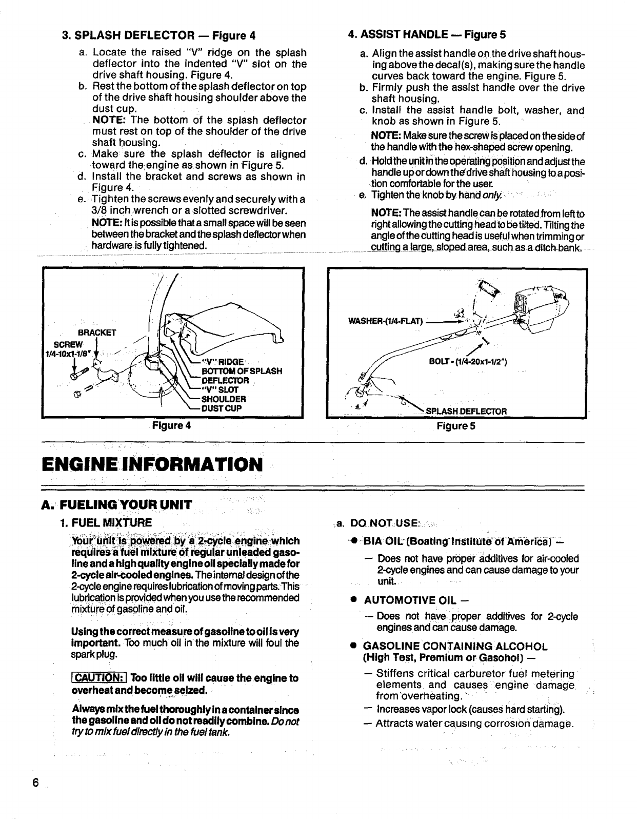 4. Use 1 partair-cooled, 2-cycle,engine oil to 16parts regular unleaded gasoline.