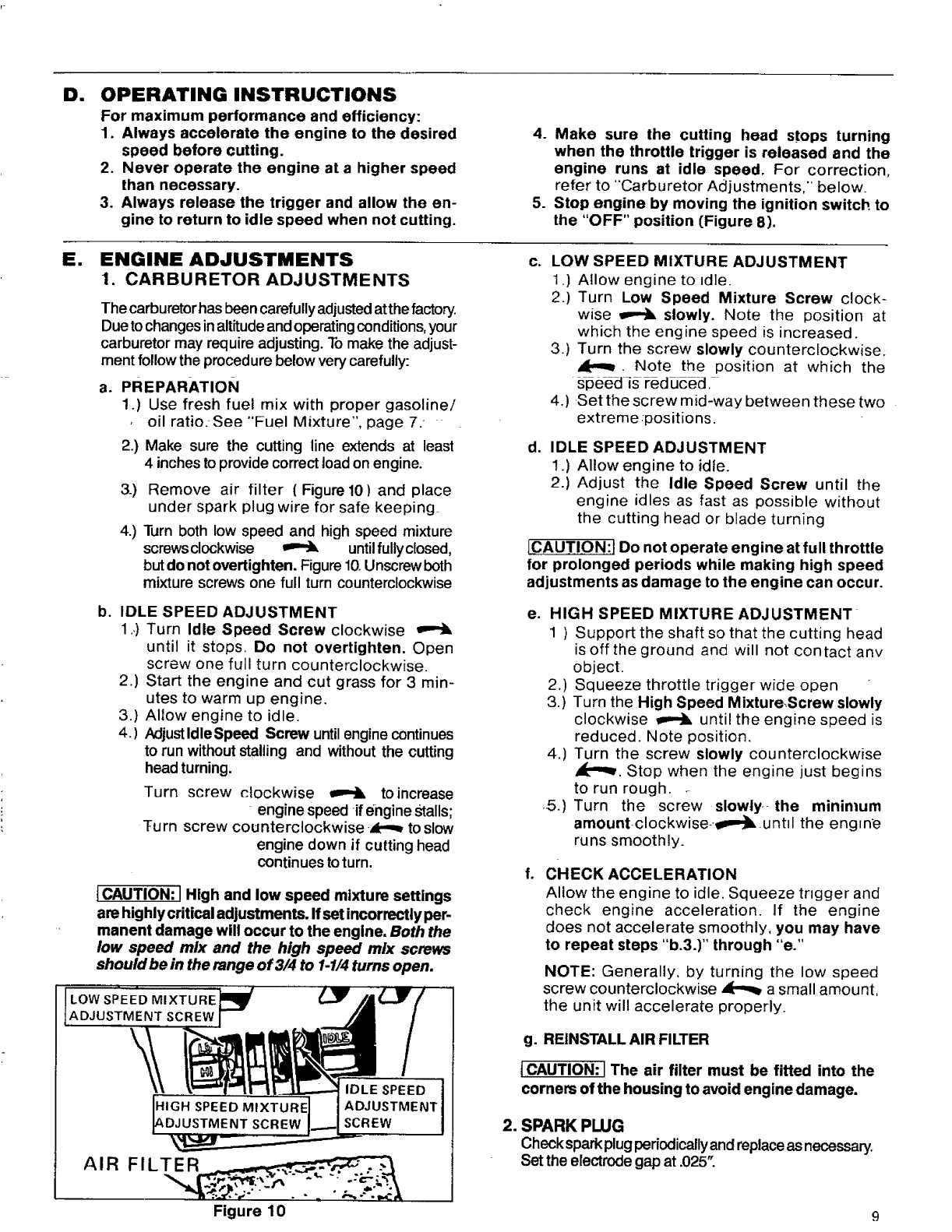2. Disconnect spark plug before performing any maintenance except for carburetor adjustment.