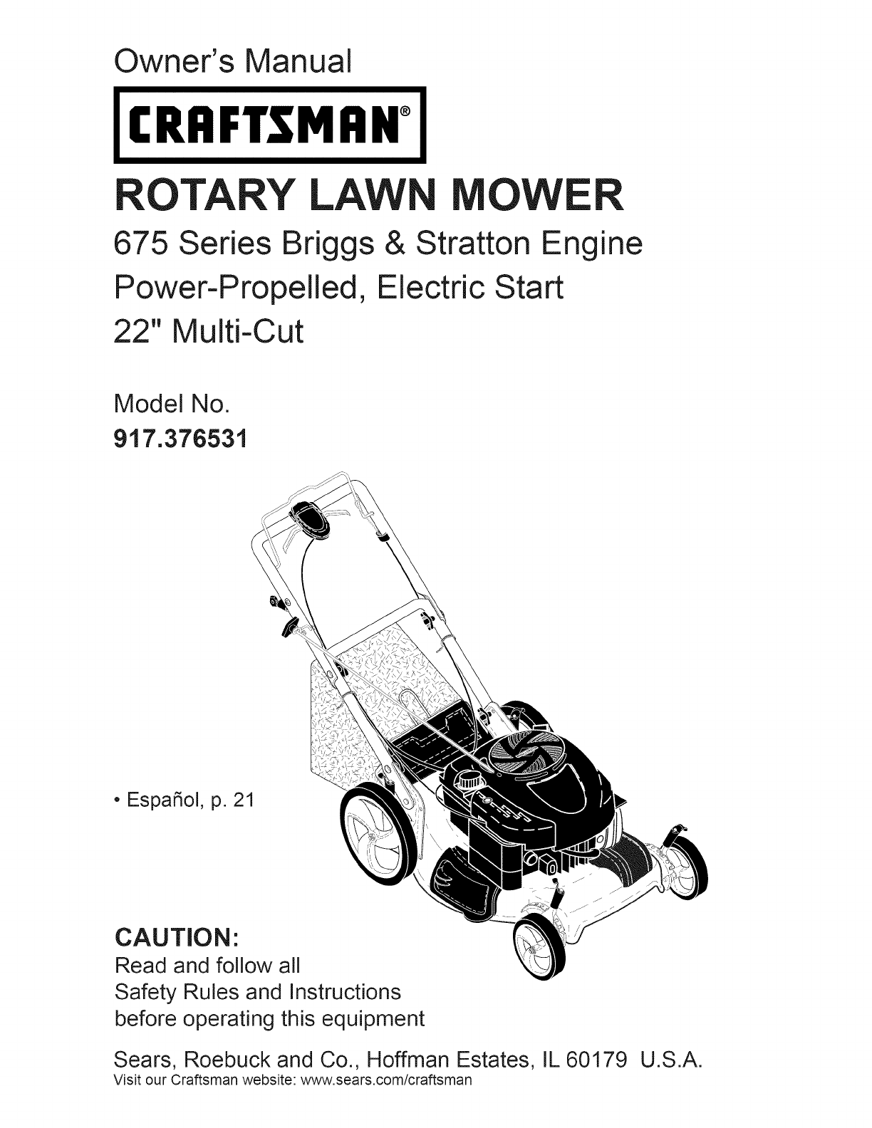 917376531 917376531 CRAFTSMAN MOWER - Manuals and Guides L0907416 View the owners manual for your CRAFTSMAN MOWER #917376531. Home:Lawn & Garden Parts:Craftsman Parts:Craftsman MOWER Manual