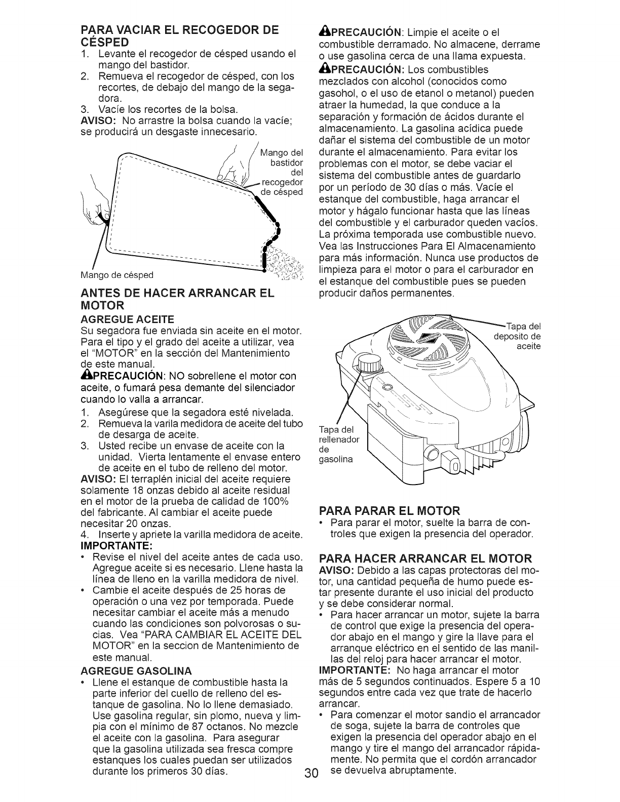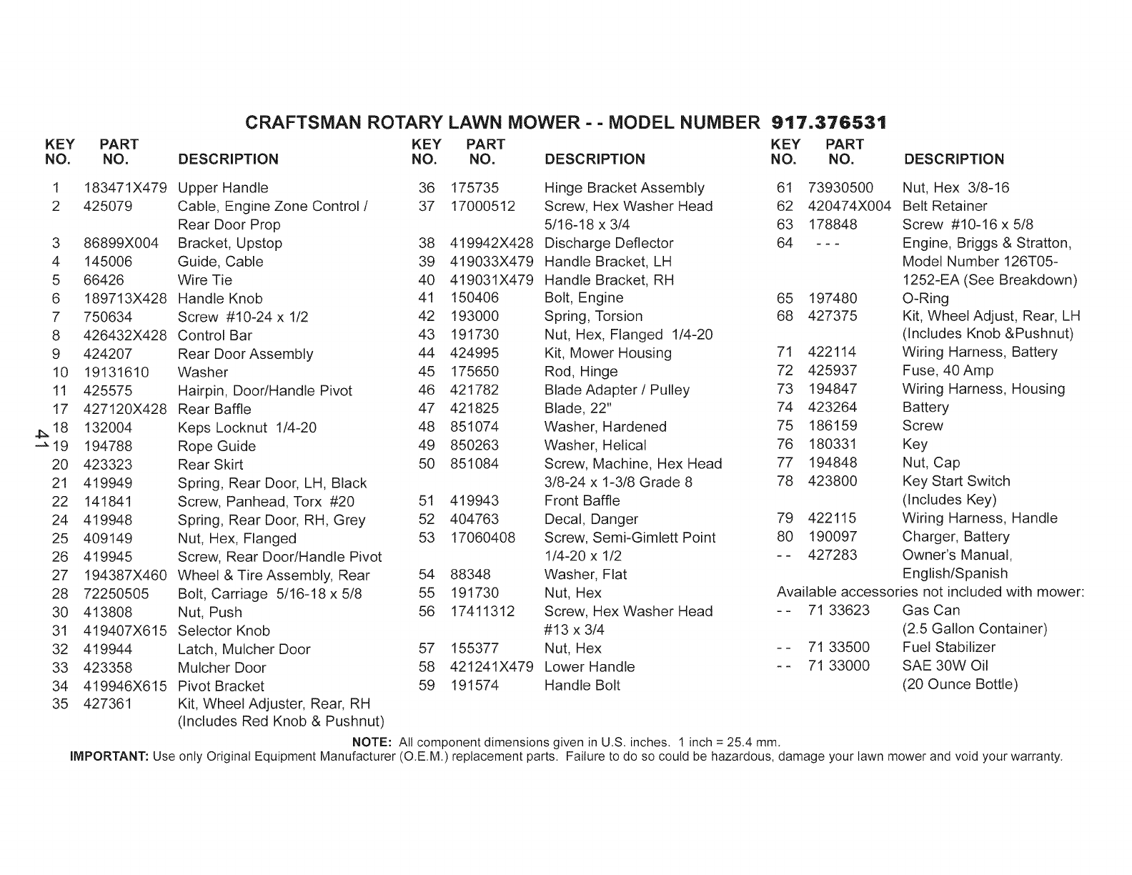 blades, blade adapters, belts, air cleaners and spark plug.