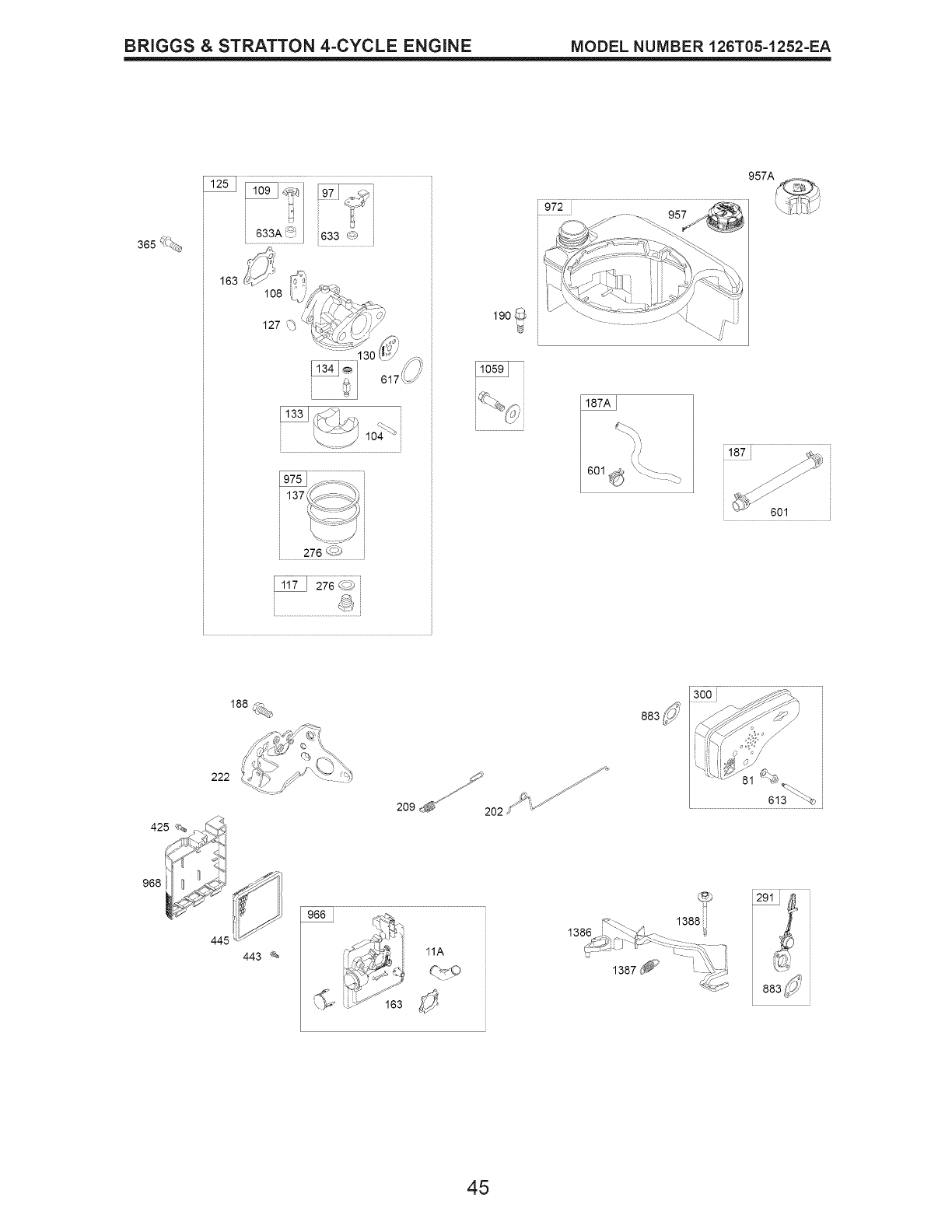 365 691688 Screw (Carburetor) 921 795064 Cover-Blower Housing