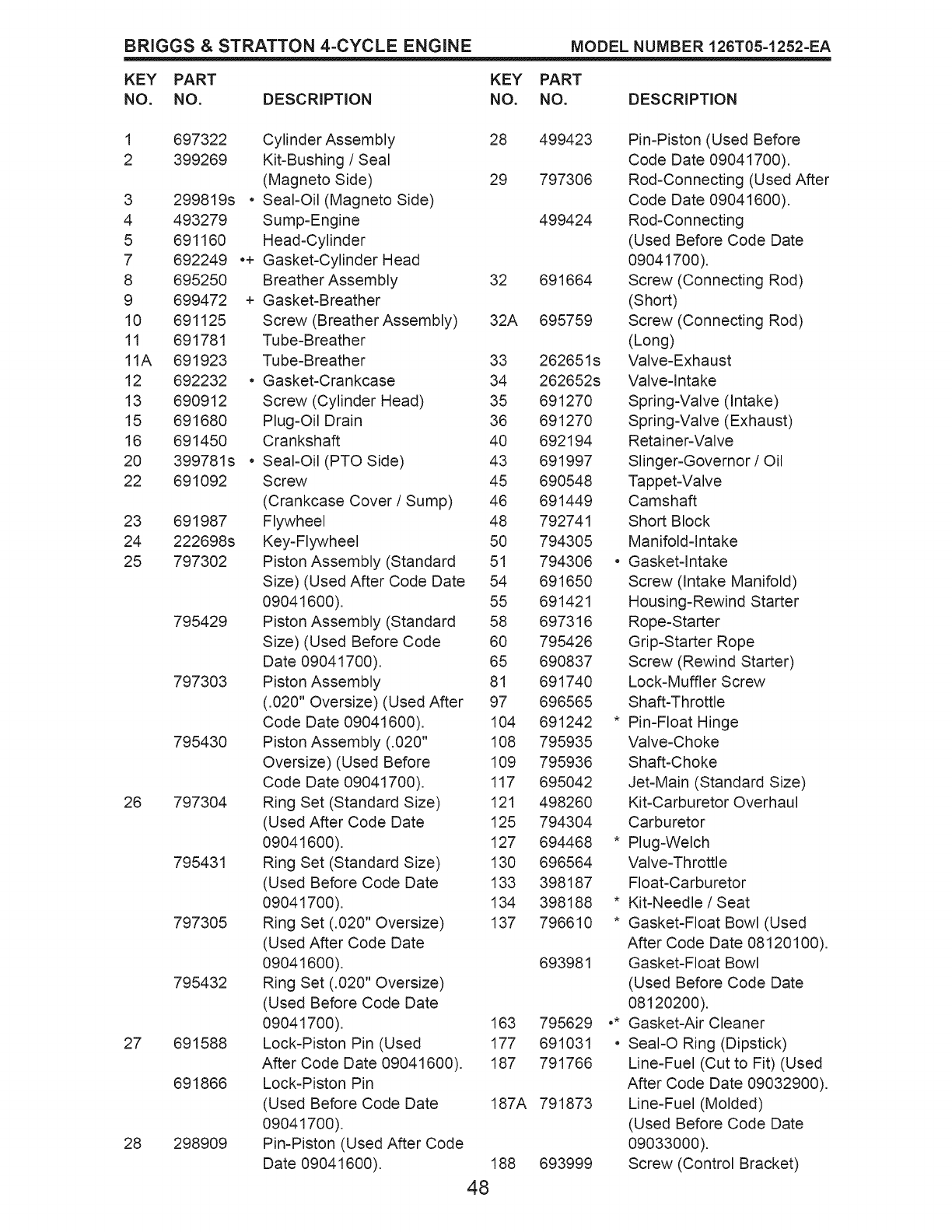 505 691251 Nut (Gov. Control Lever) 969 690700 Screw (Blower Cover)