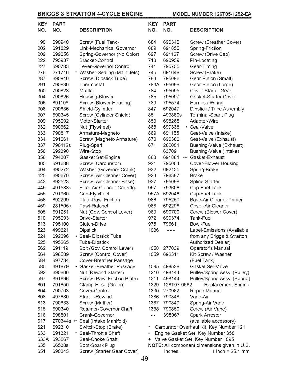 456 692299 Plate-Pawl Friction 966 795259 Base-Air Cleaner Primer
