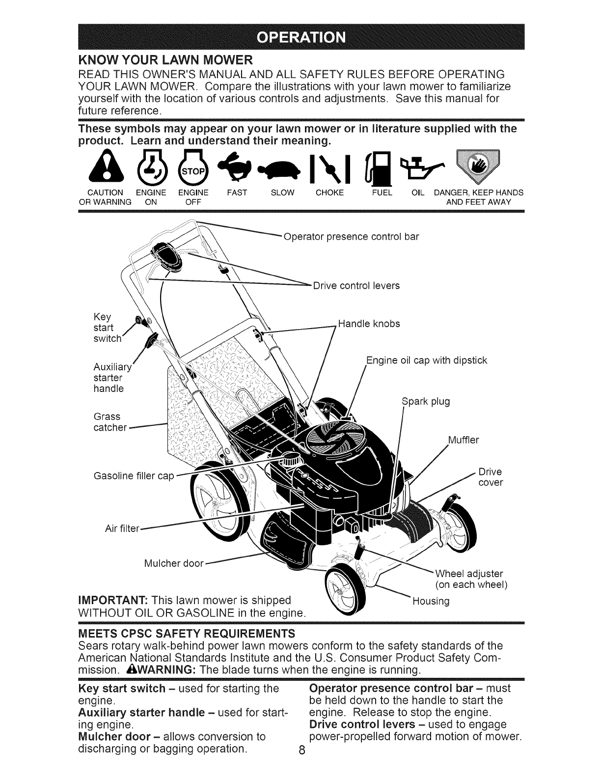 crackshafts and the failure to assemble, operate or maintain this Lawn Mower