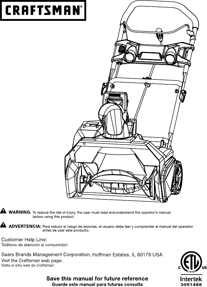 Craftsman 40V Brushless Snow Thrower Owners Manual