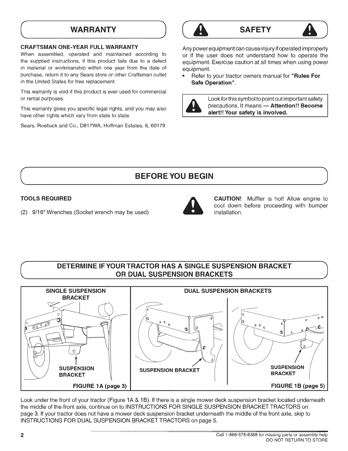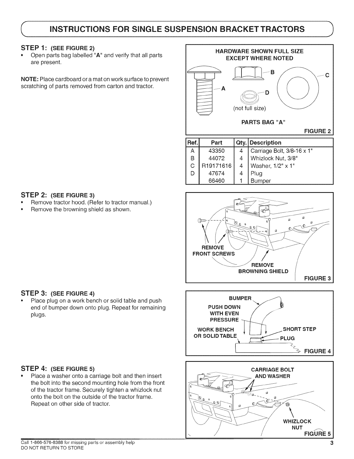 page 3. If your tractor does not have a mower deck suspension bracket underneath the middle of the front axle, skip to