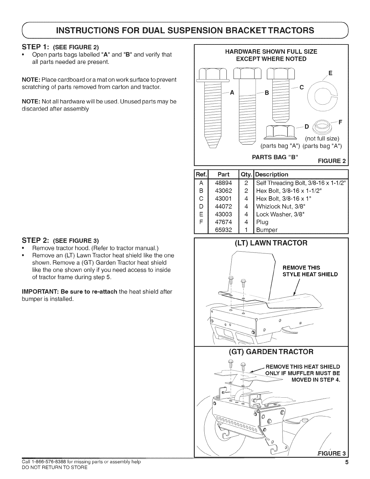 INSTRUCTIONS FOR DUAL SUSPENSION BRACKET TRACTORS on page 5.