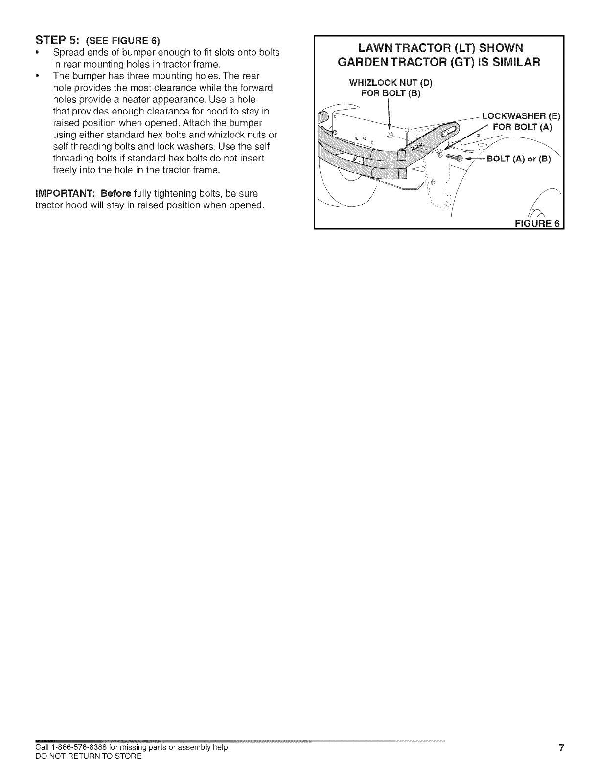 6 Call 1-866-576-8388 for missing parts or assembly help