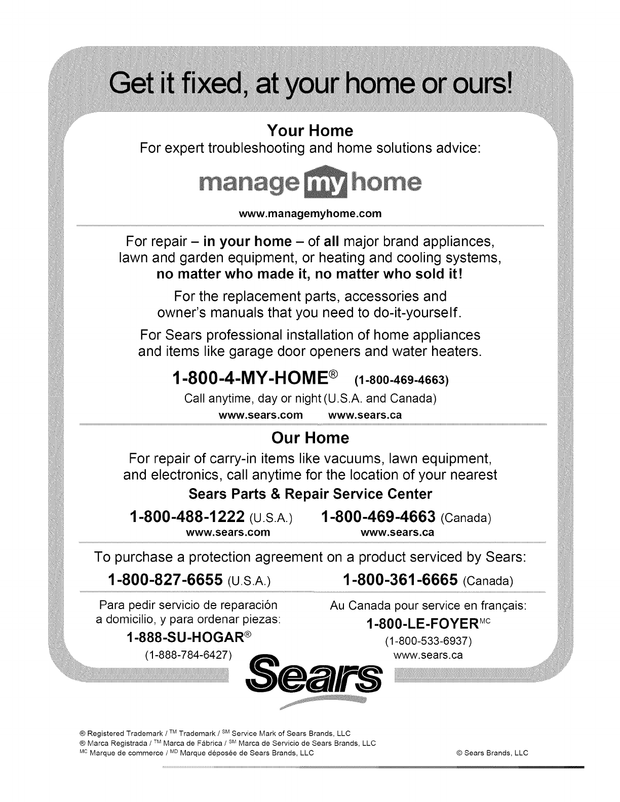 ® Marca Registrada /TM Marca de Fabrica /sM Marca de Servicio de Sears Brands, LLC