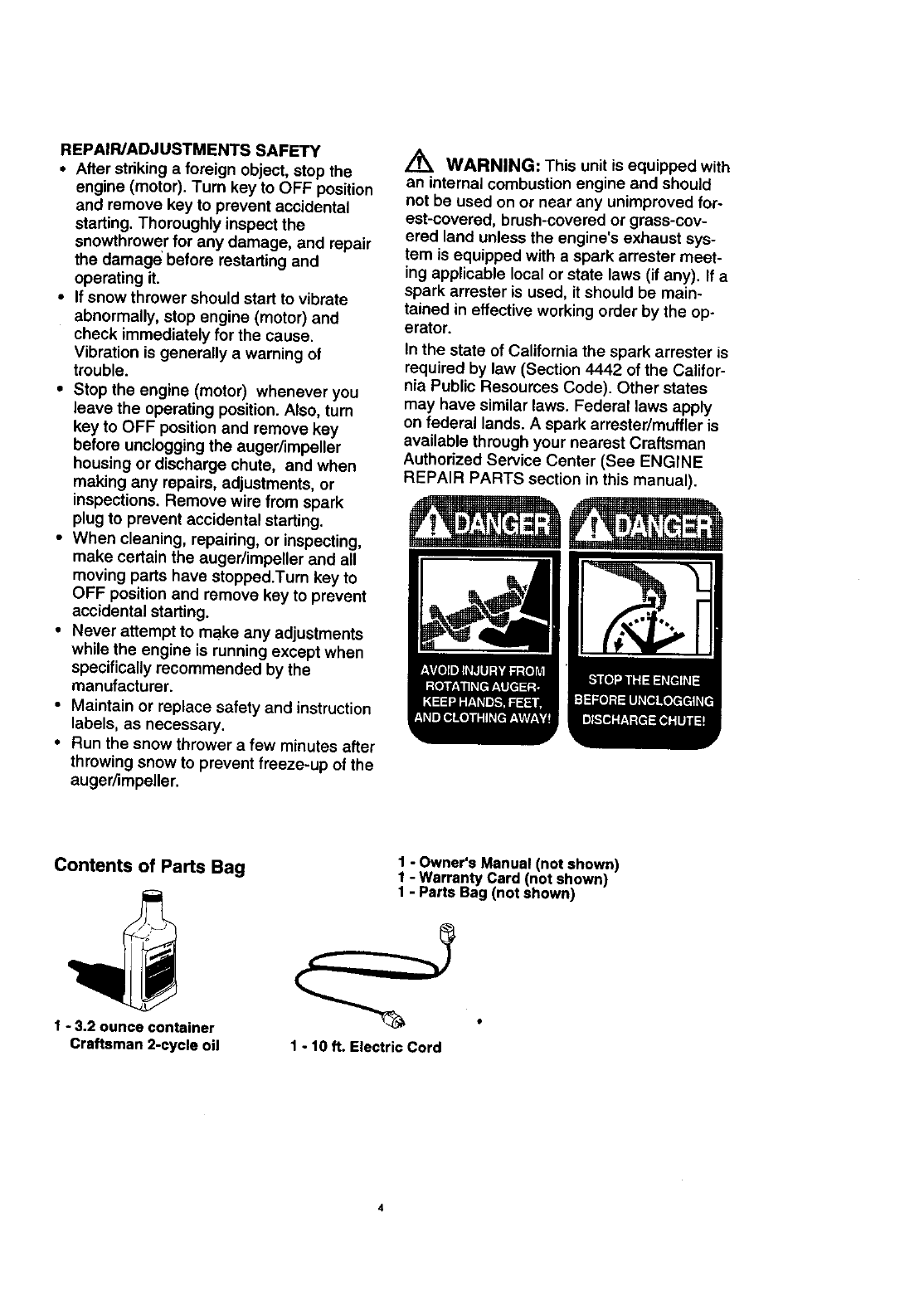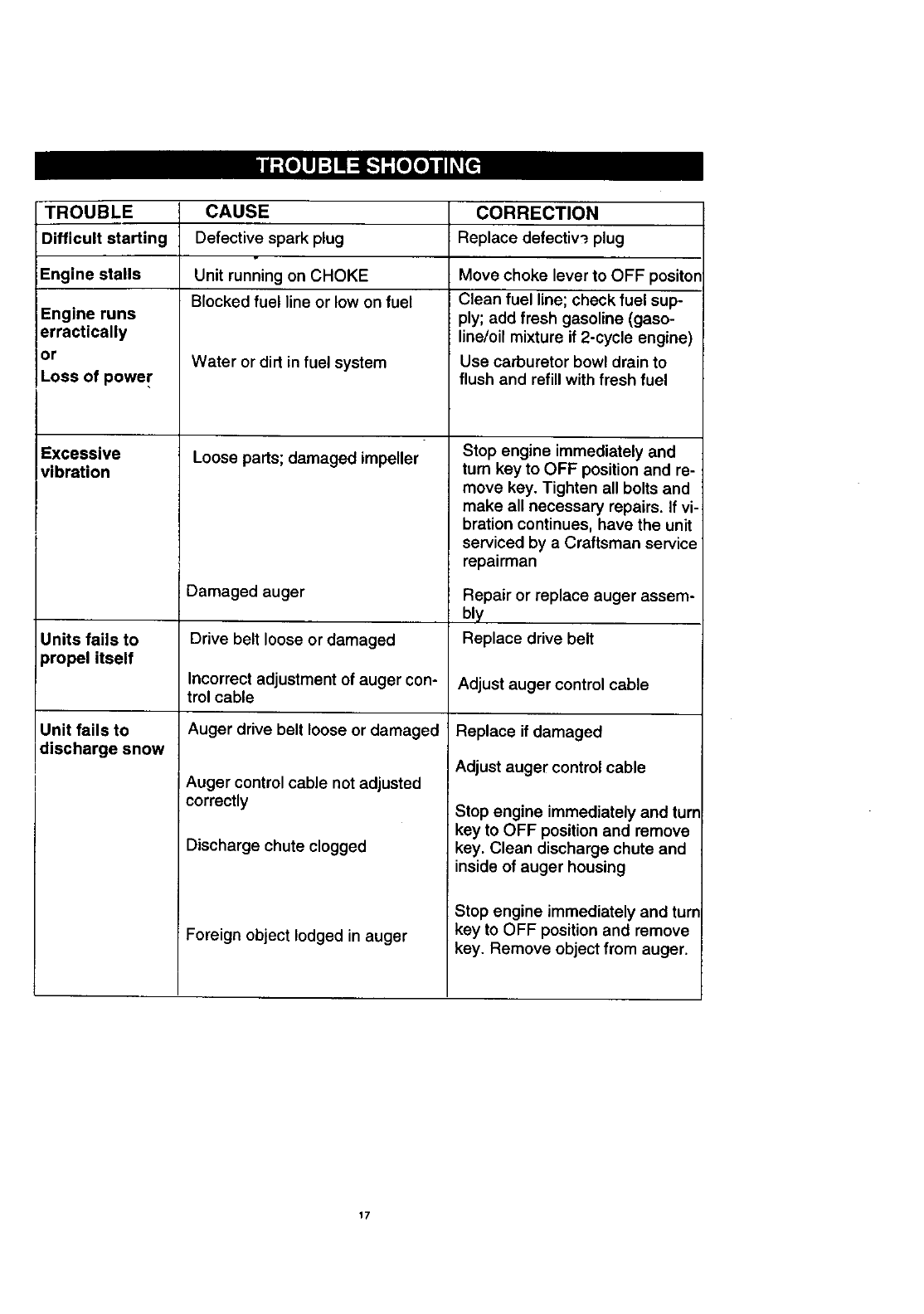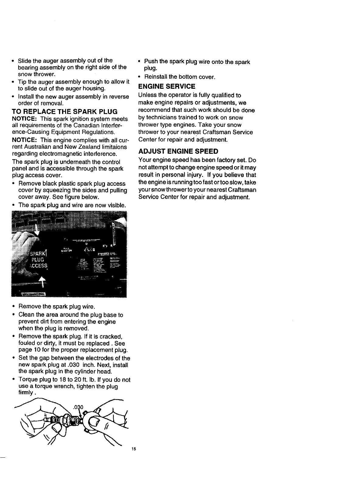 THROWER TO THE NEAREST CRAFTSMAN SERVICE CENTER/DEPARTMENT IN