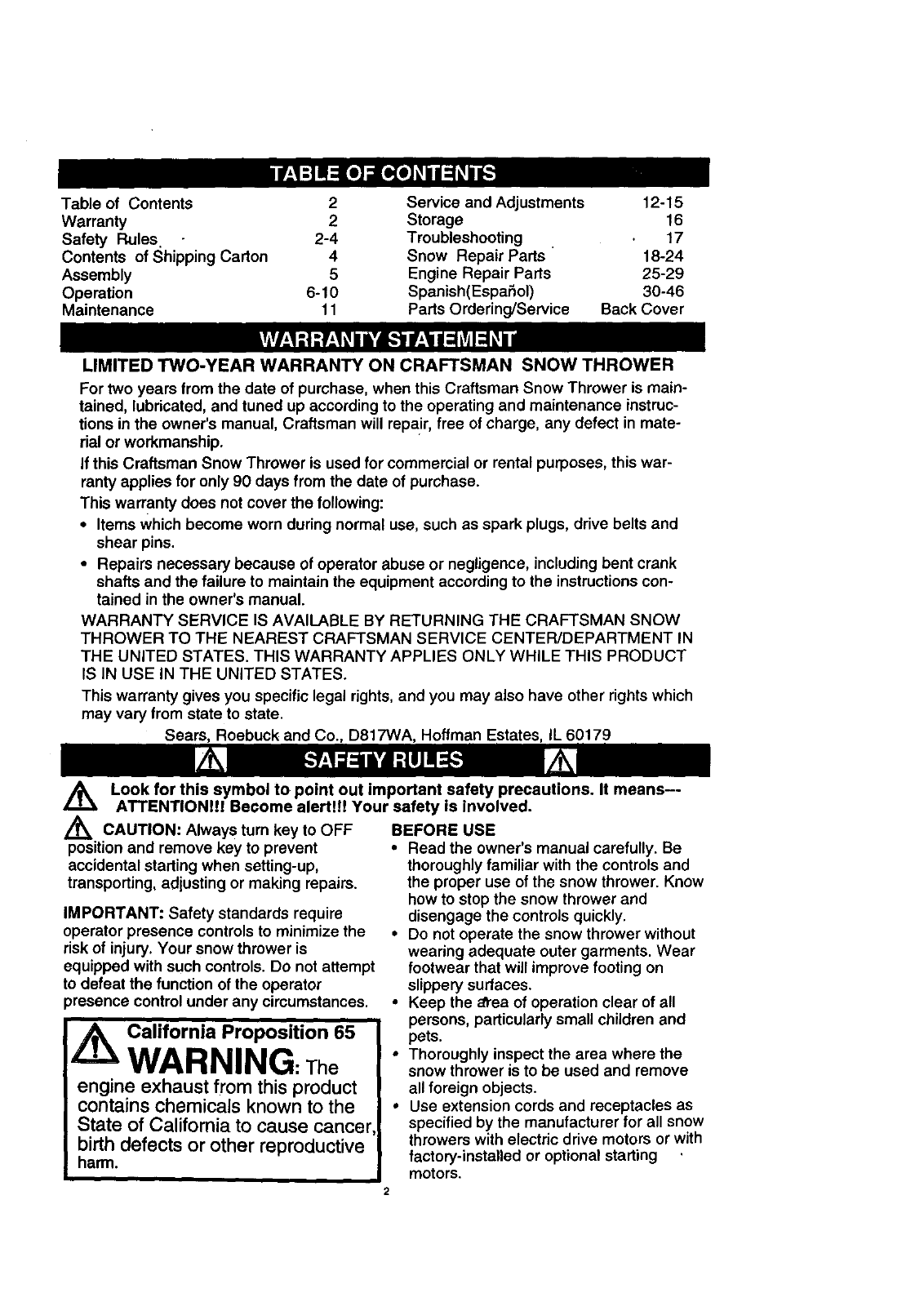 LIMITED TWO-YEAR WARRANTY ON CRAFTSMAN SNOW THROWER